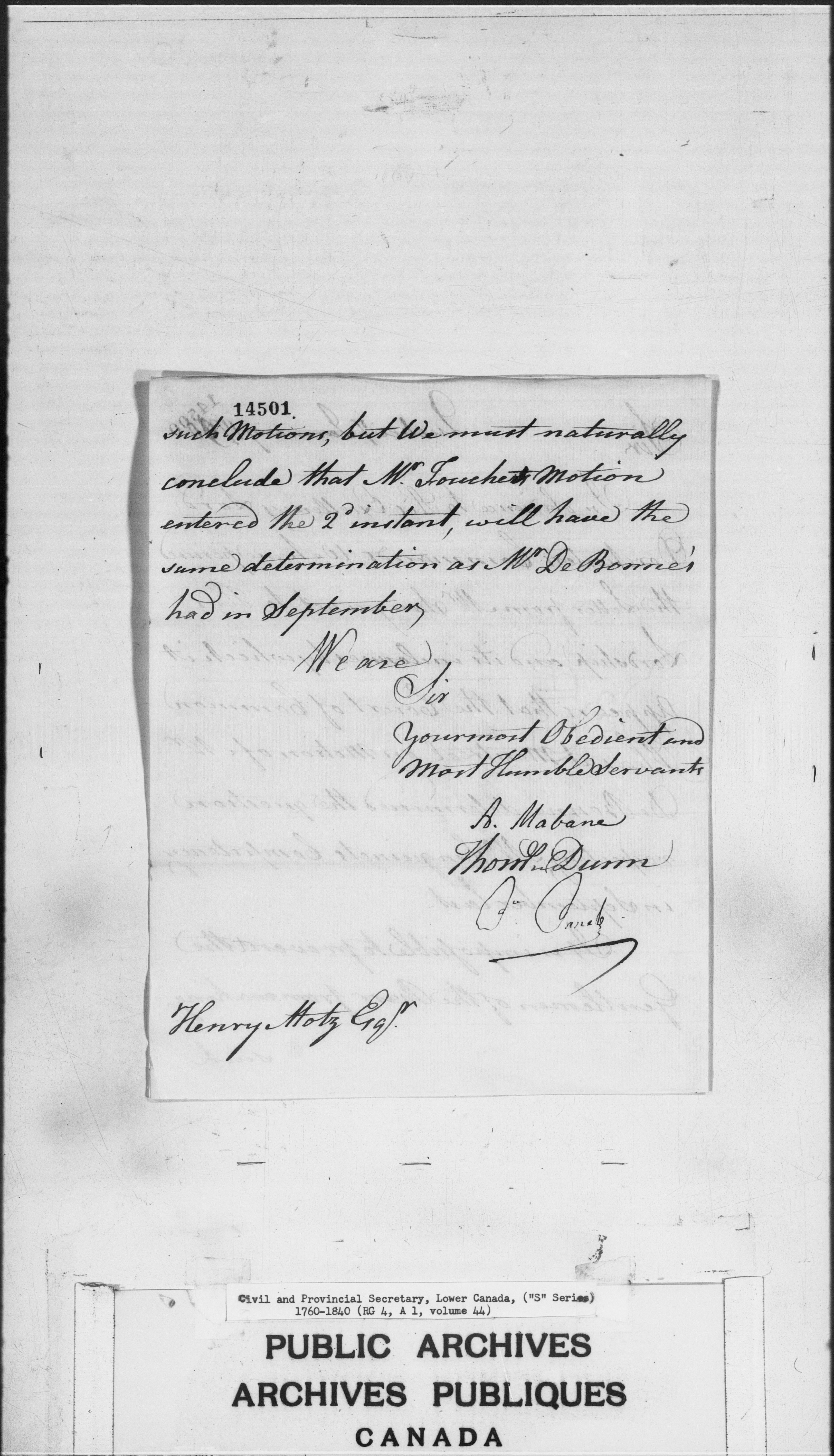Civil Secretary's correspondence : A1 -S Series, Quebec and Lower Canada, 1760-1840 - 3005