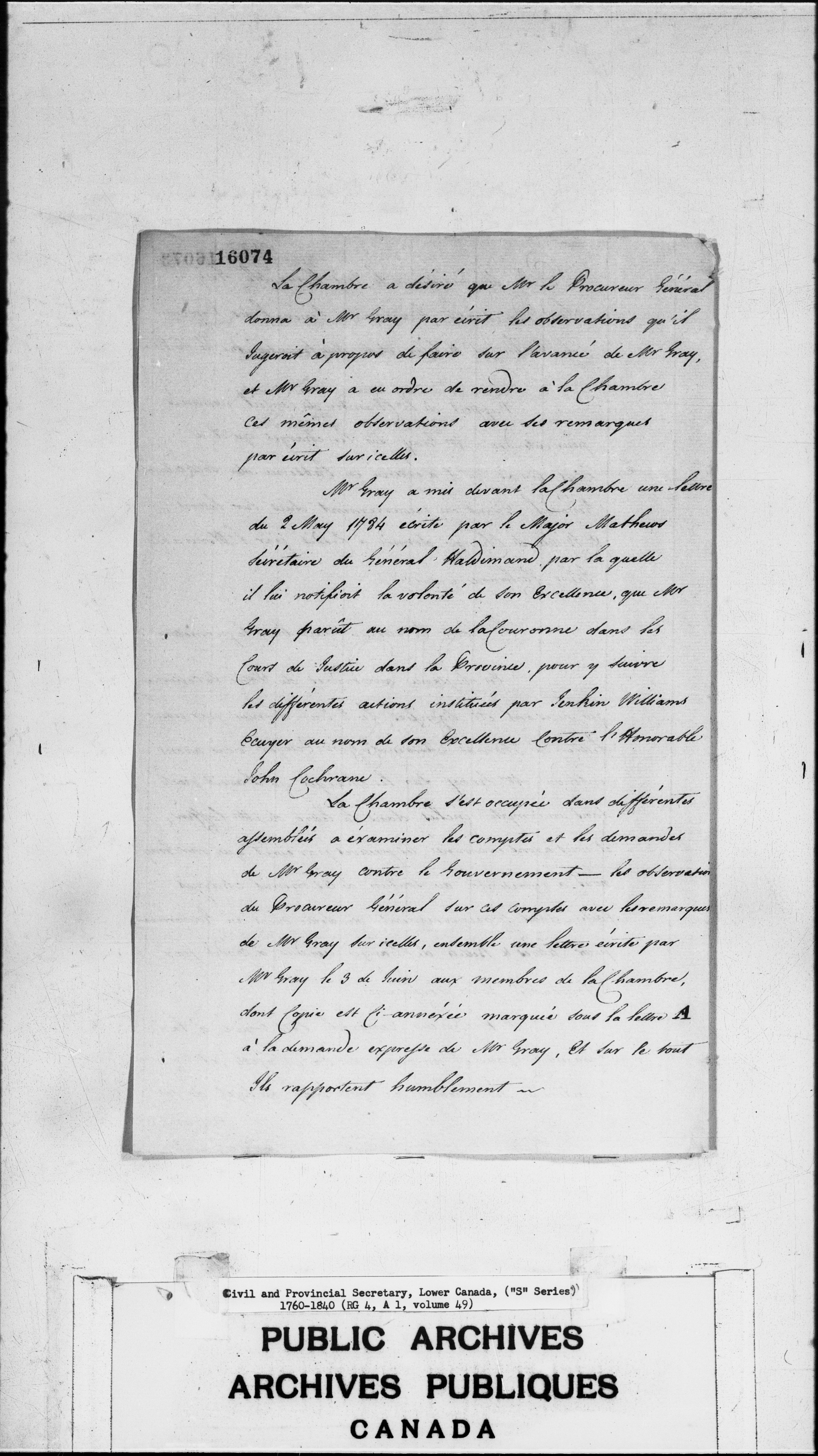 Civil Secretary's correspondence : A1 -S Series, Quebec and Lower Canada, 1760-1840 - 3006