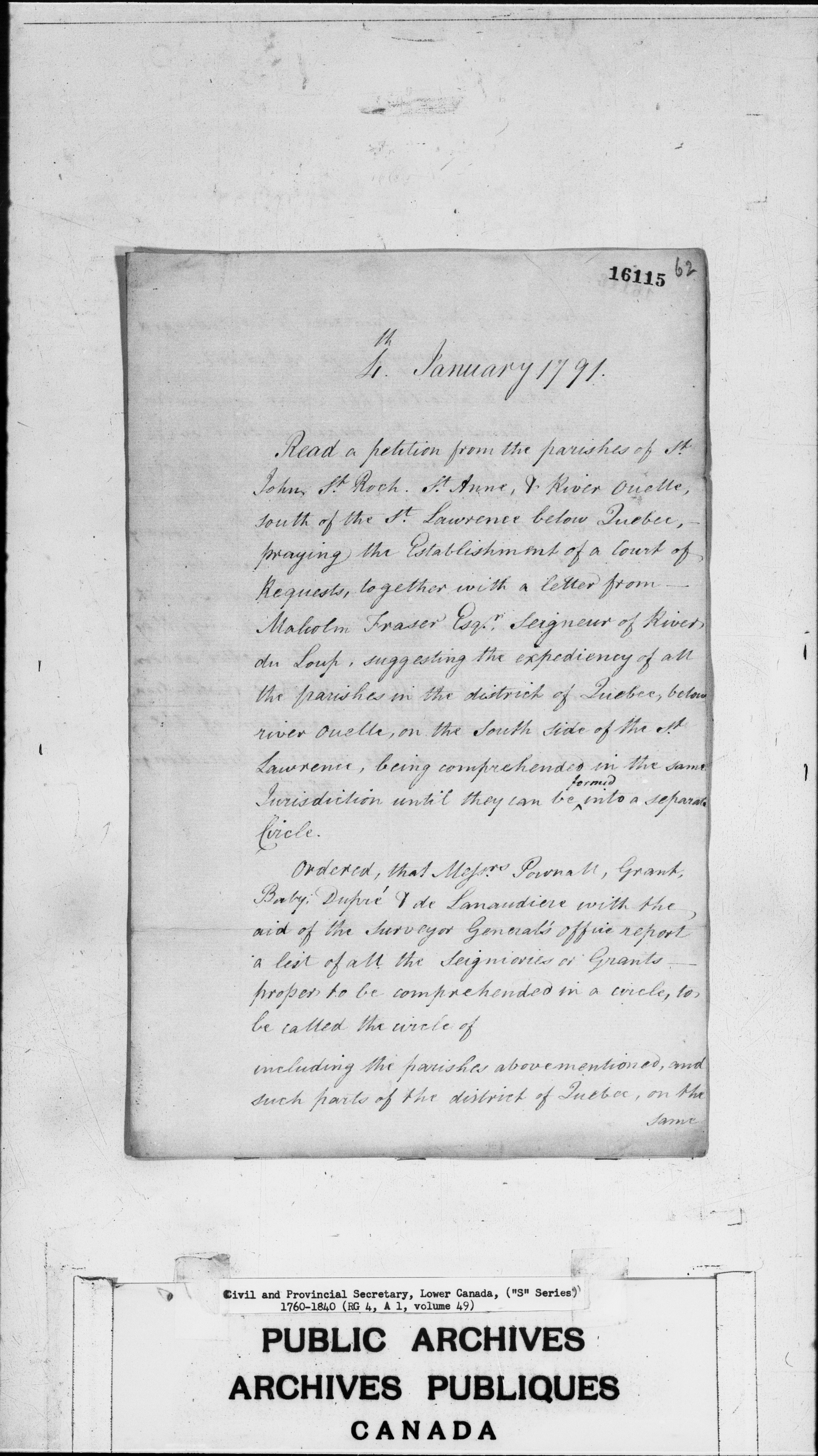 Civil Secretary's correspondence : A1 -S Series, Quebec and Lower Canada, 1760-1840 - 3006
