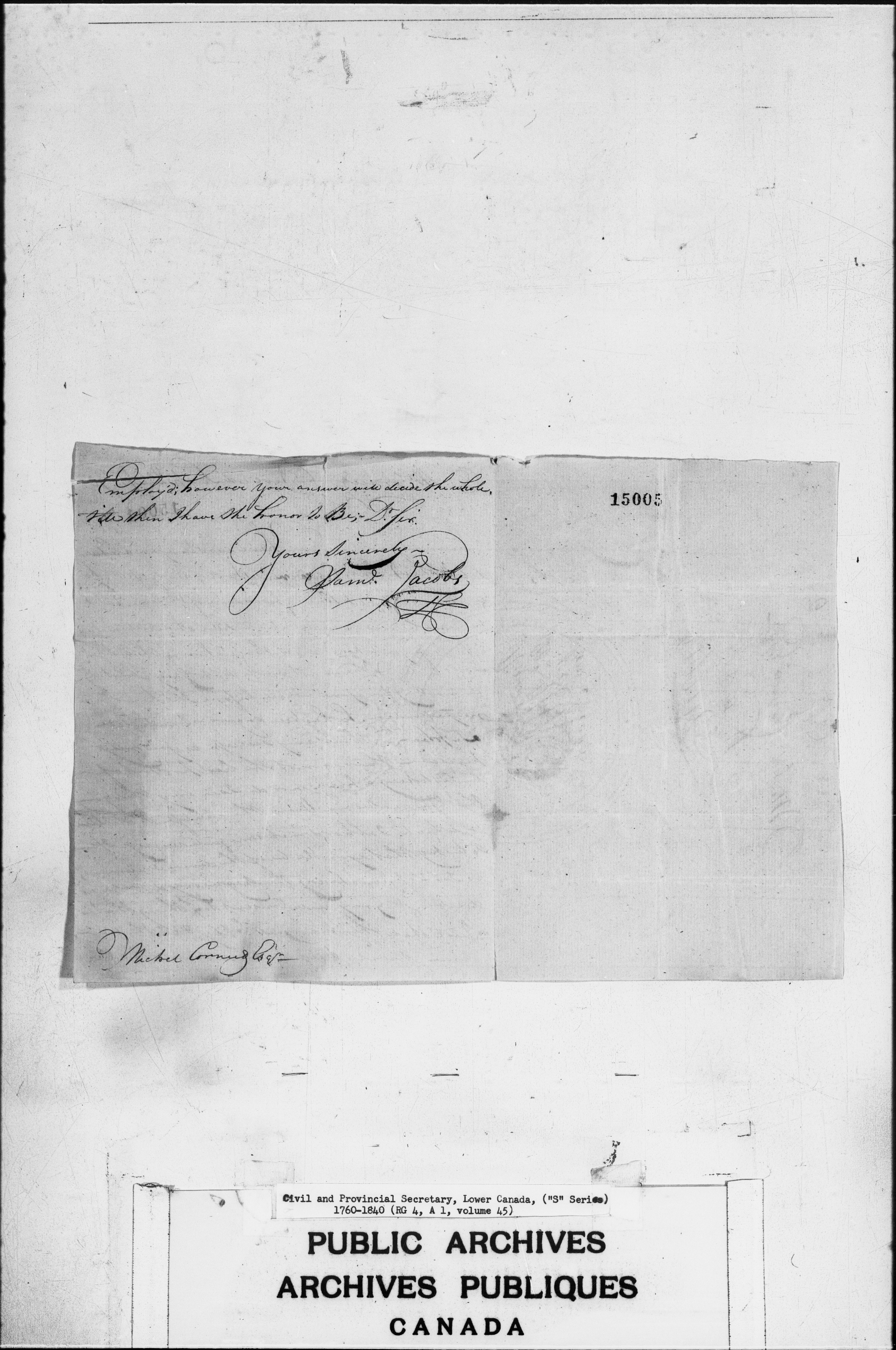 Civil Secretary's correspondence : A1 -S Series, Quebec and Lower Canada, 1760-1840 - 3006