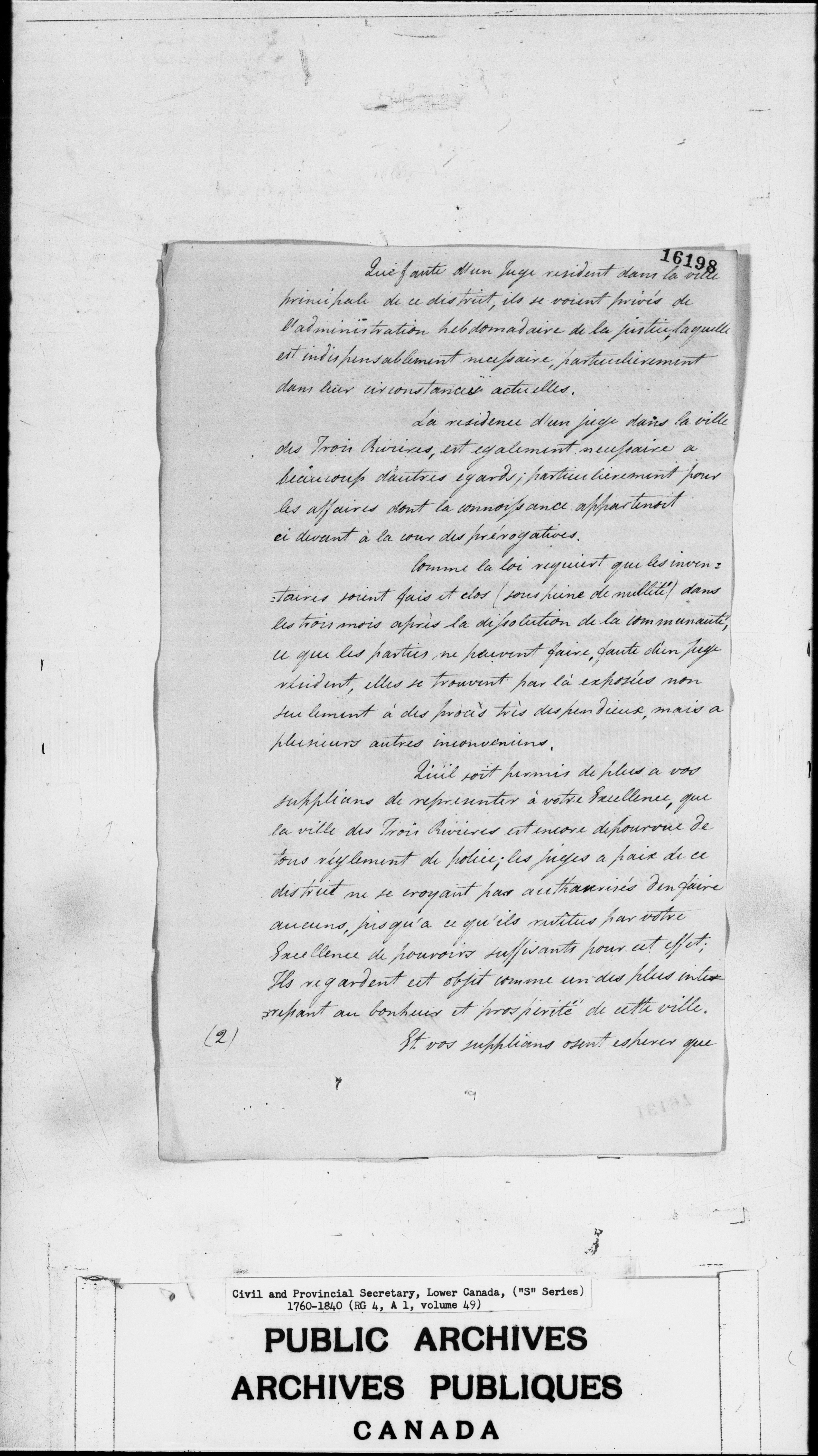 Civil Secretary's correspondence : A1 -S Series, Quebec and Lower Canada, 1760-1840 - 3007