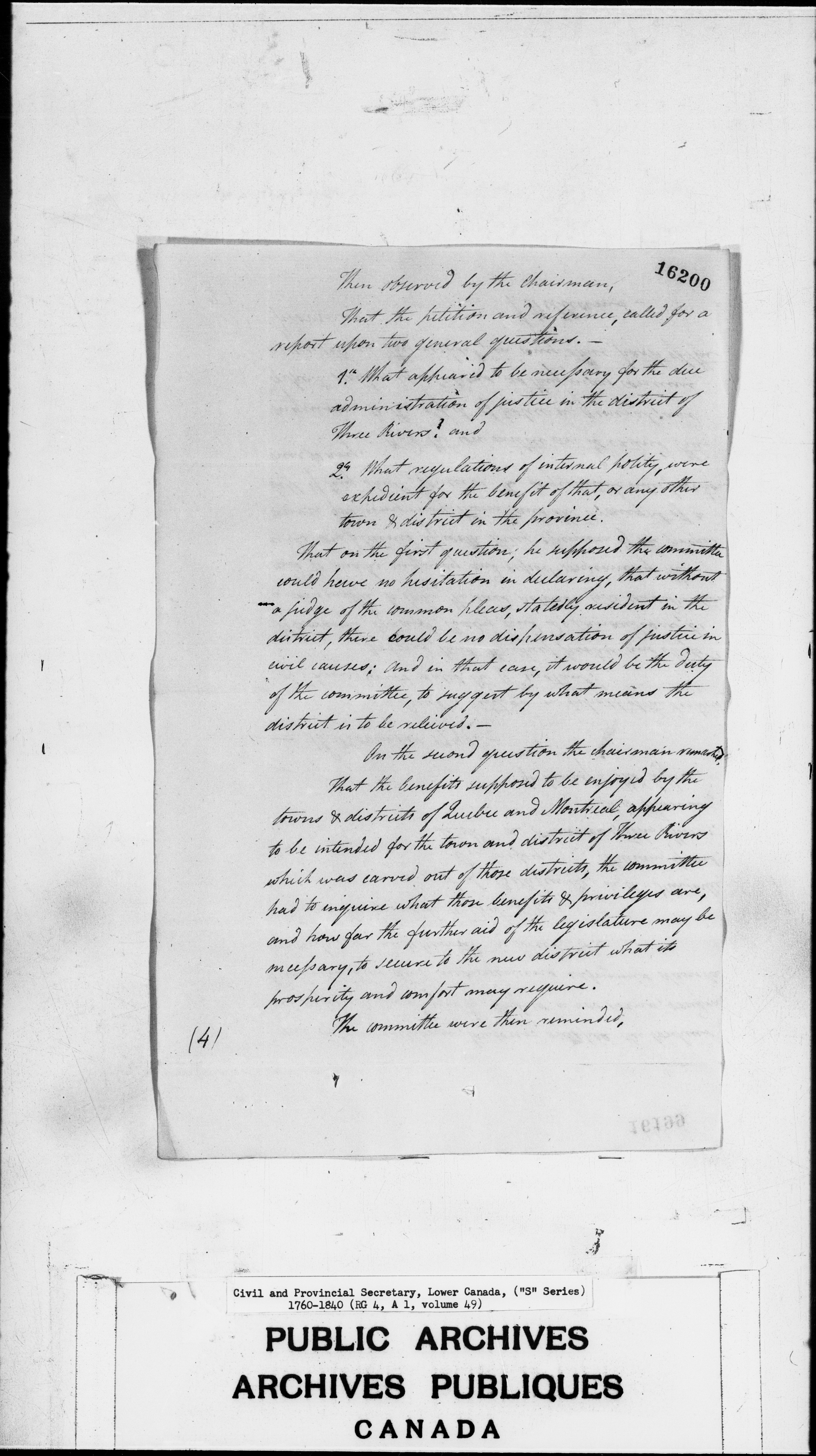 Civil Secretary's correspondence : A1 -S Series, Quebec and Lower Canada, 1760-1840 - 3007