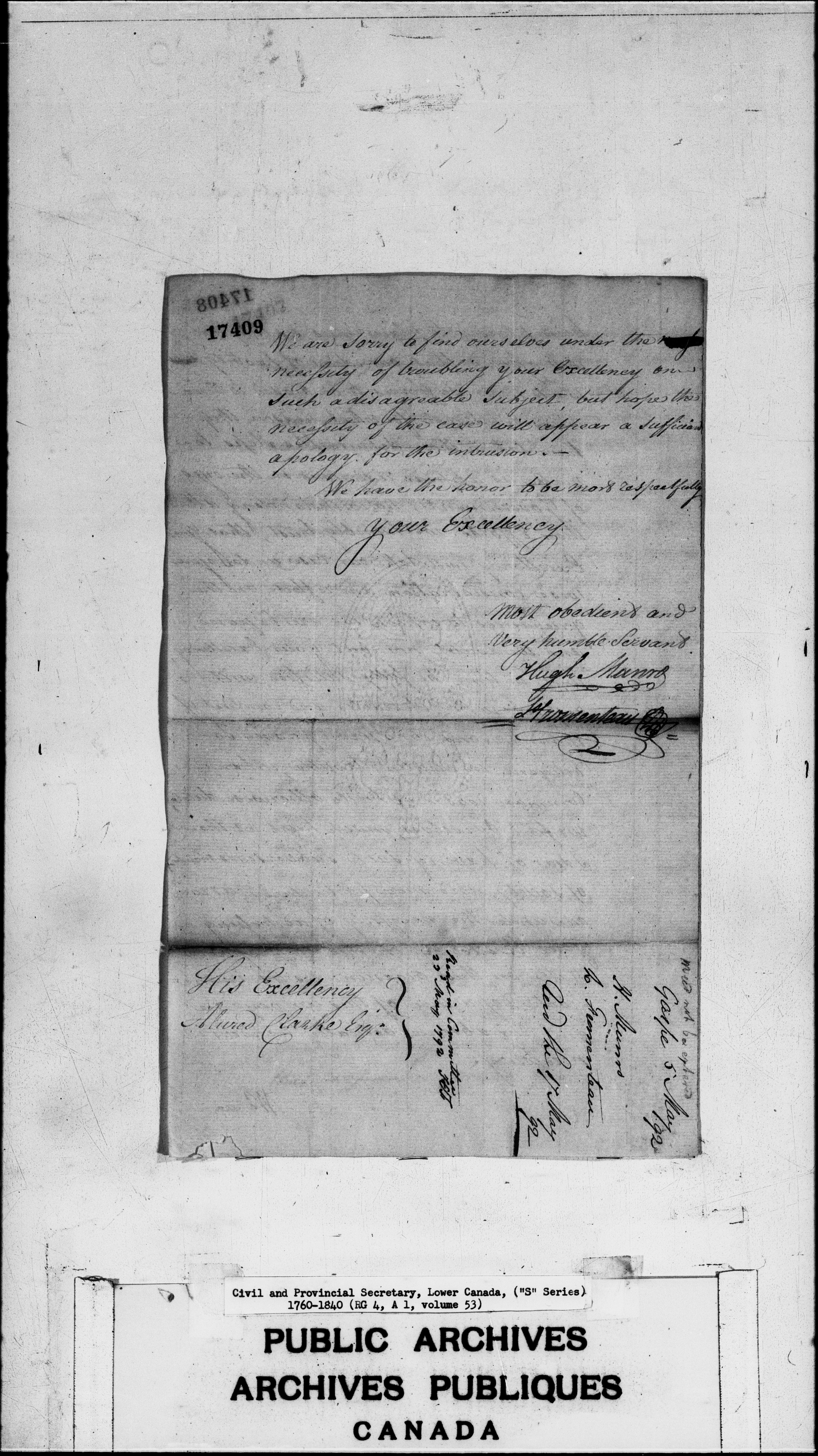 Civil Secretary's correspondence : A1 -S Series, Quebec and Lower Canada, 1760-1840 - 3008