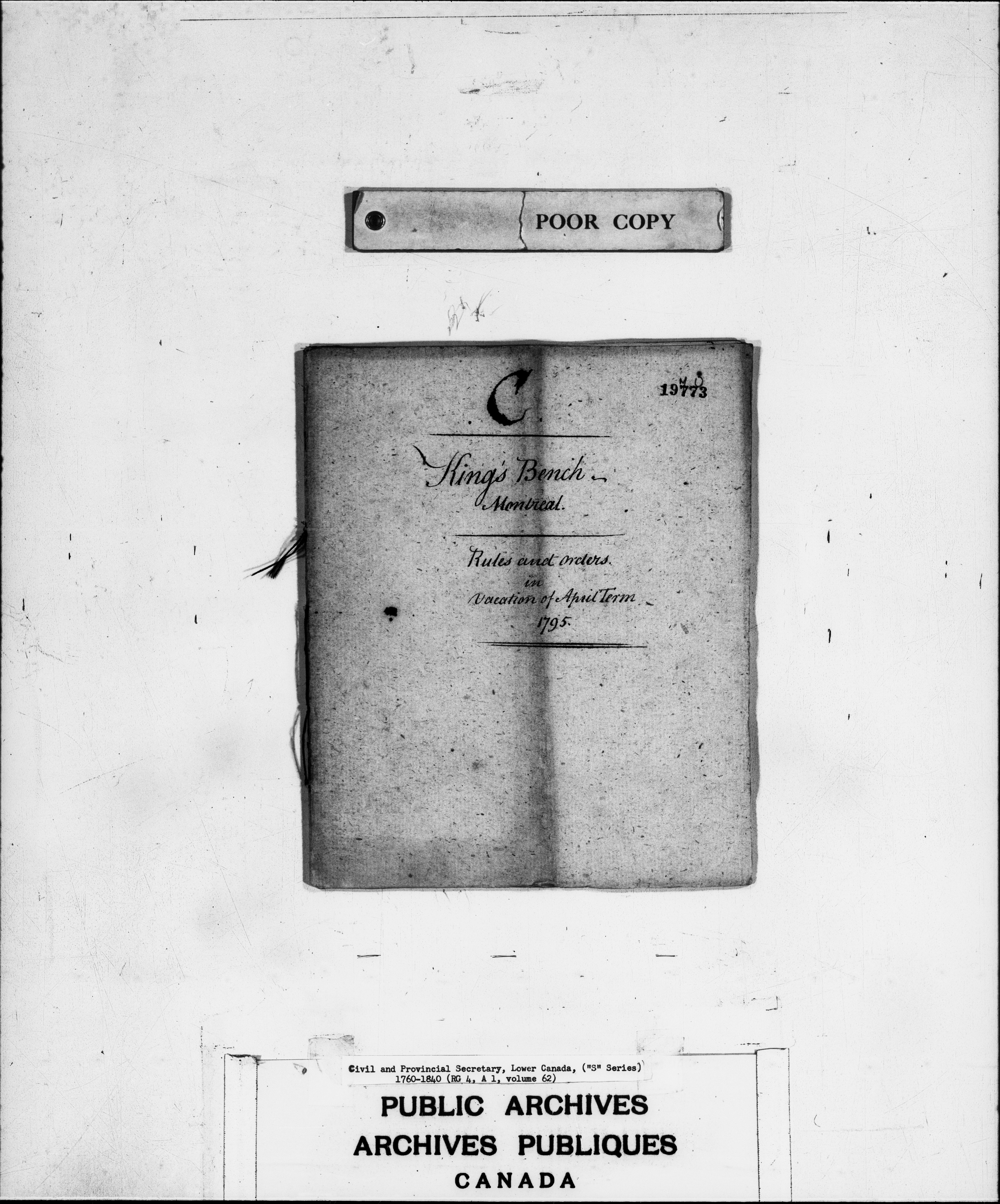 Civil Secretary's correspondence : A 1 - S Series : Quebec and Lower Canada : C-3009