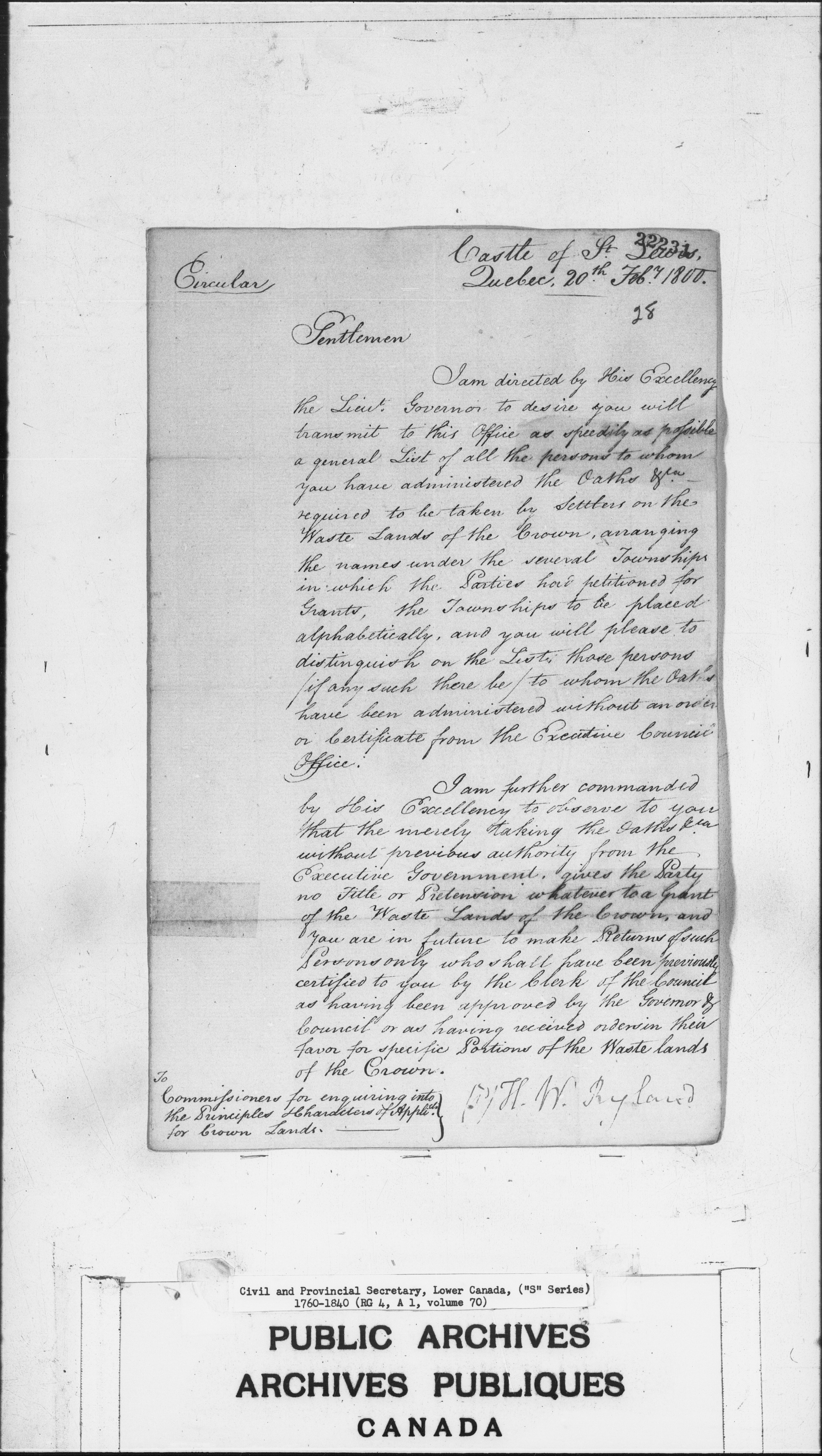 Civil Secretary's correspondence : A1 -S Series, Quebec and Lower Canada, 1760-1840 - 3011