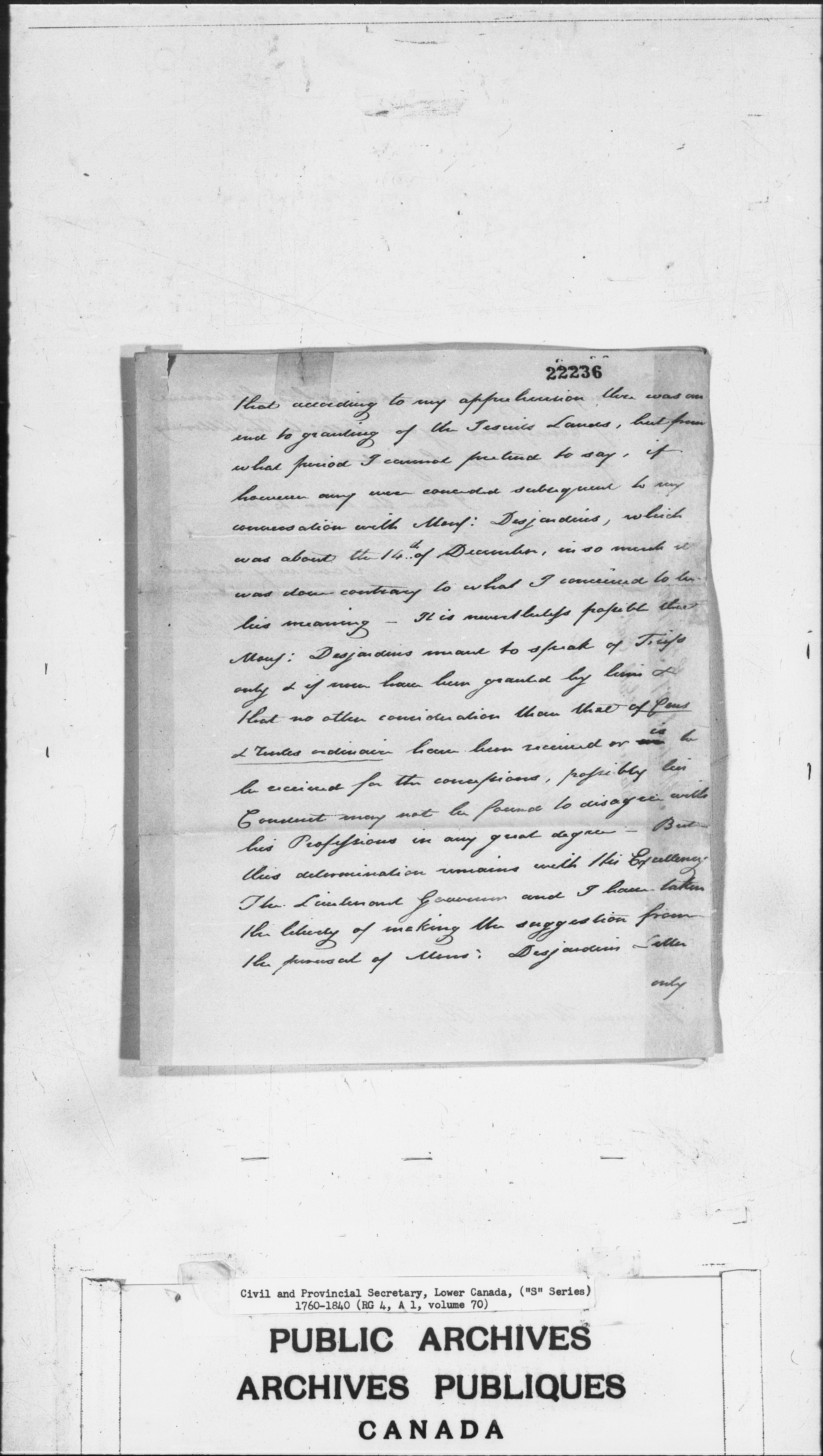 Civil Secretary's correspondence : A1 -S Series, Quebec and Lower Canada, 1760-1840 - 3011