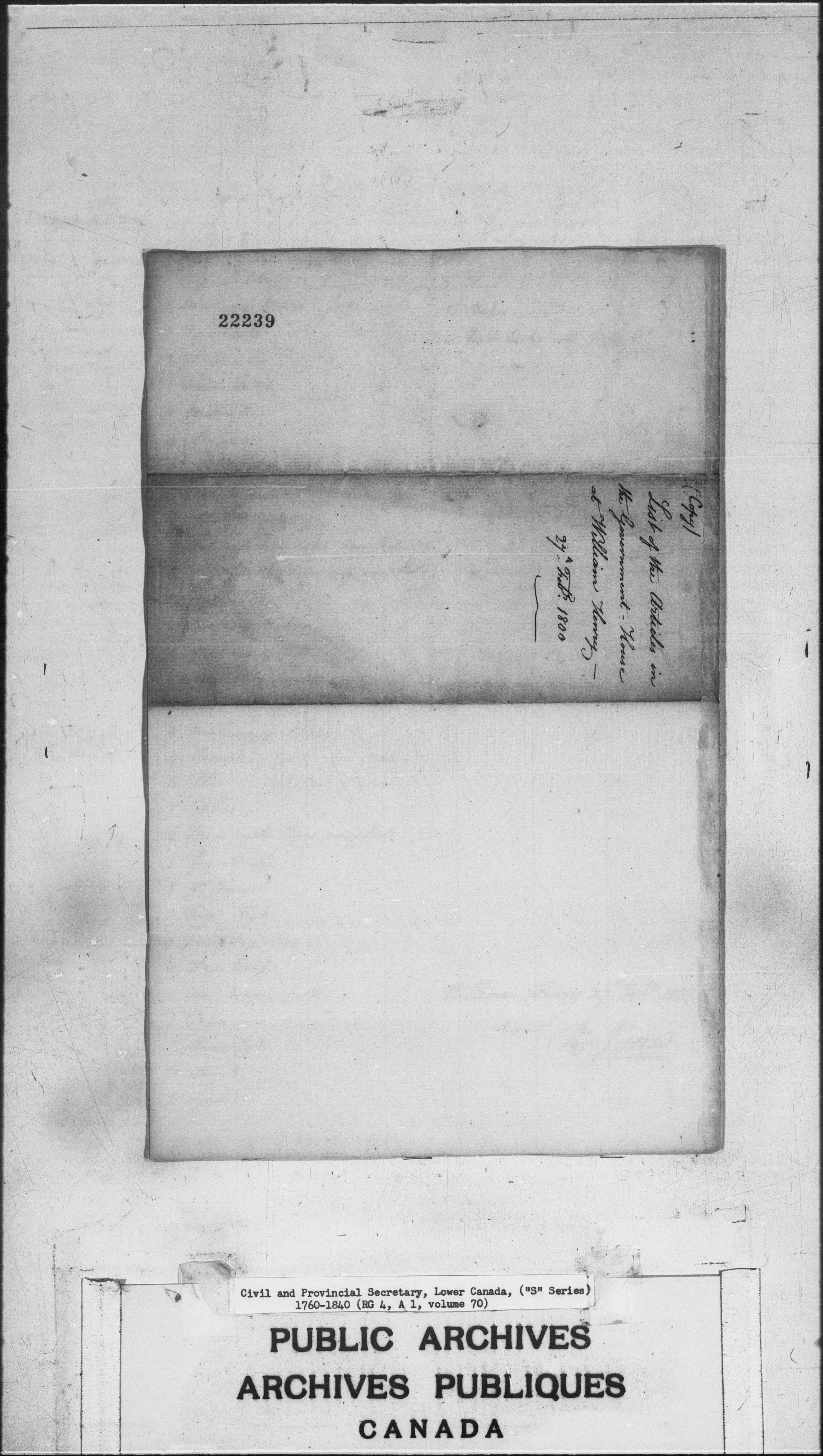 Civil Secretary's correspondence : A1 -S Series, Quebec and Lower Canada, 1760-1840 - 3011