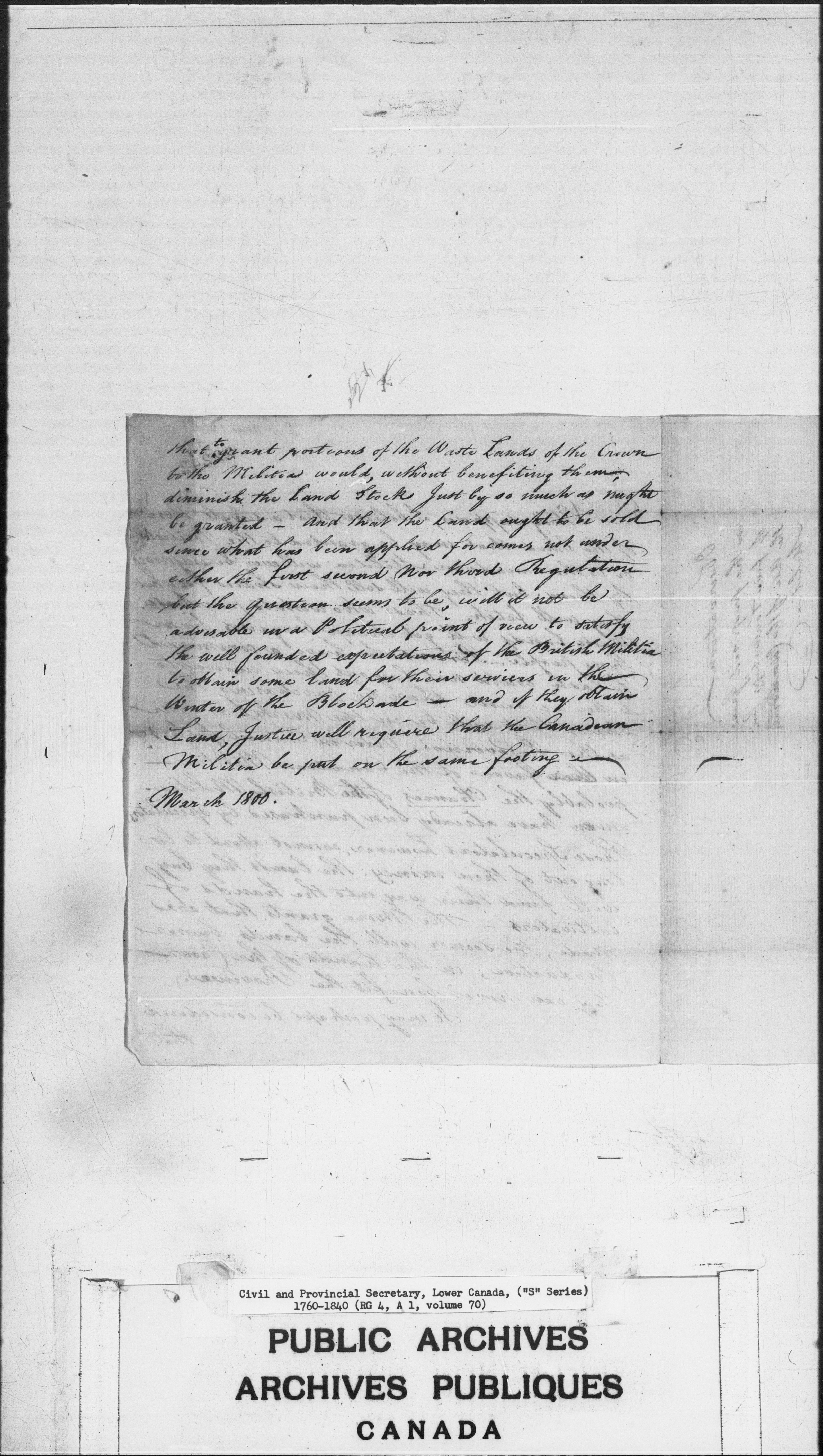 Civil Secretary's correspondence : A 1 - S Series : Quebec and Lower Canada : C-3011