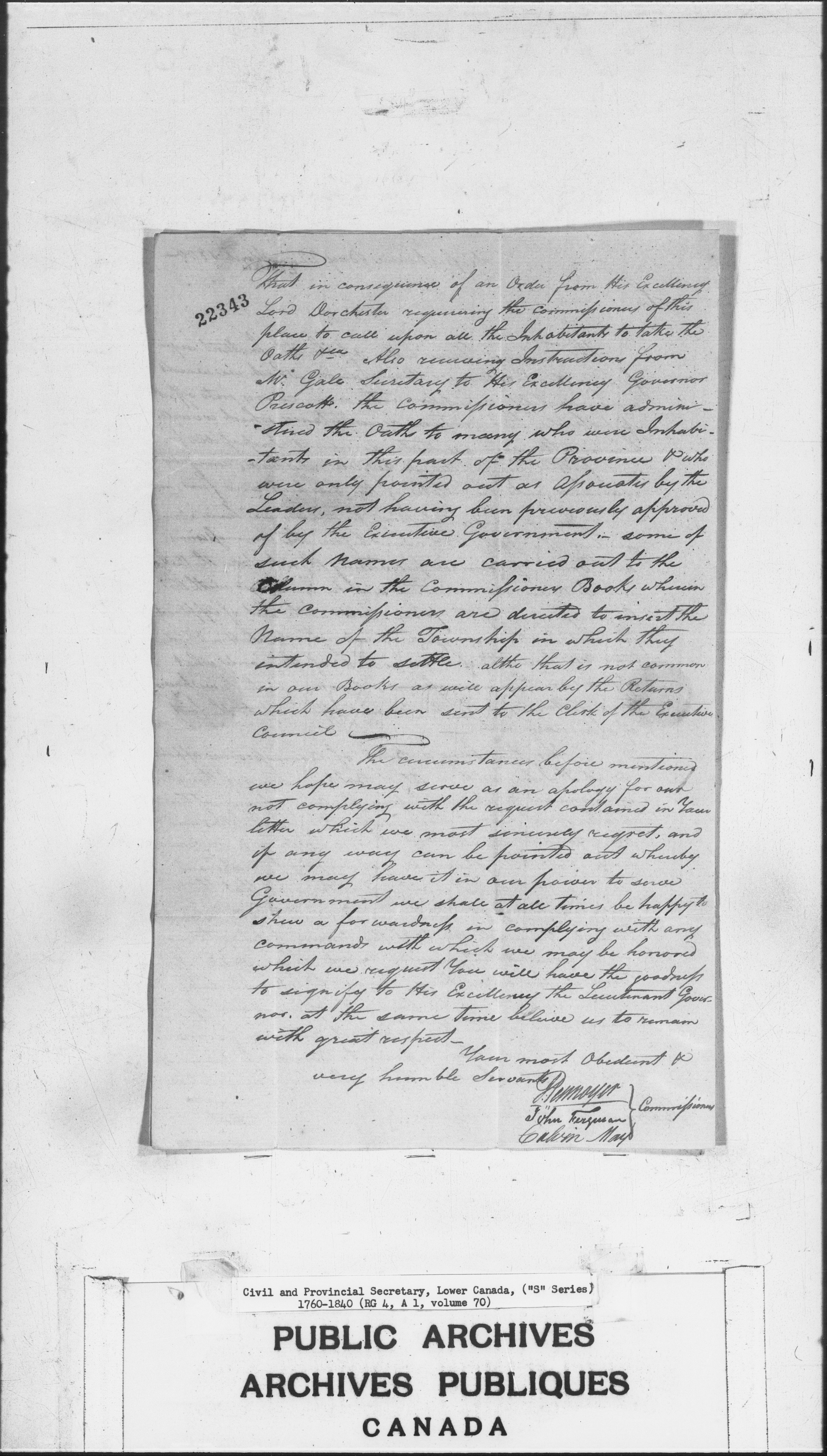 Civil Secretary's correspondence : A 1 - S Series : Quebec and Lower Canada : C-3012