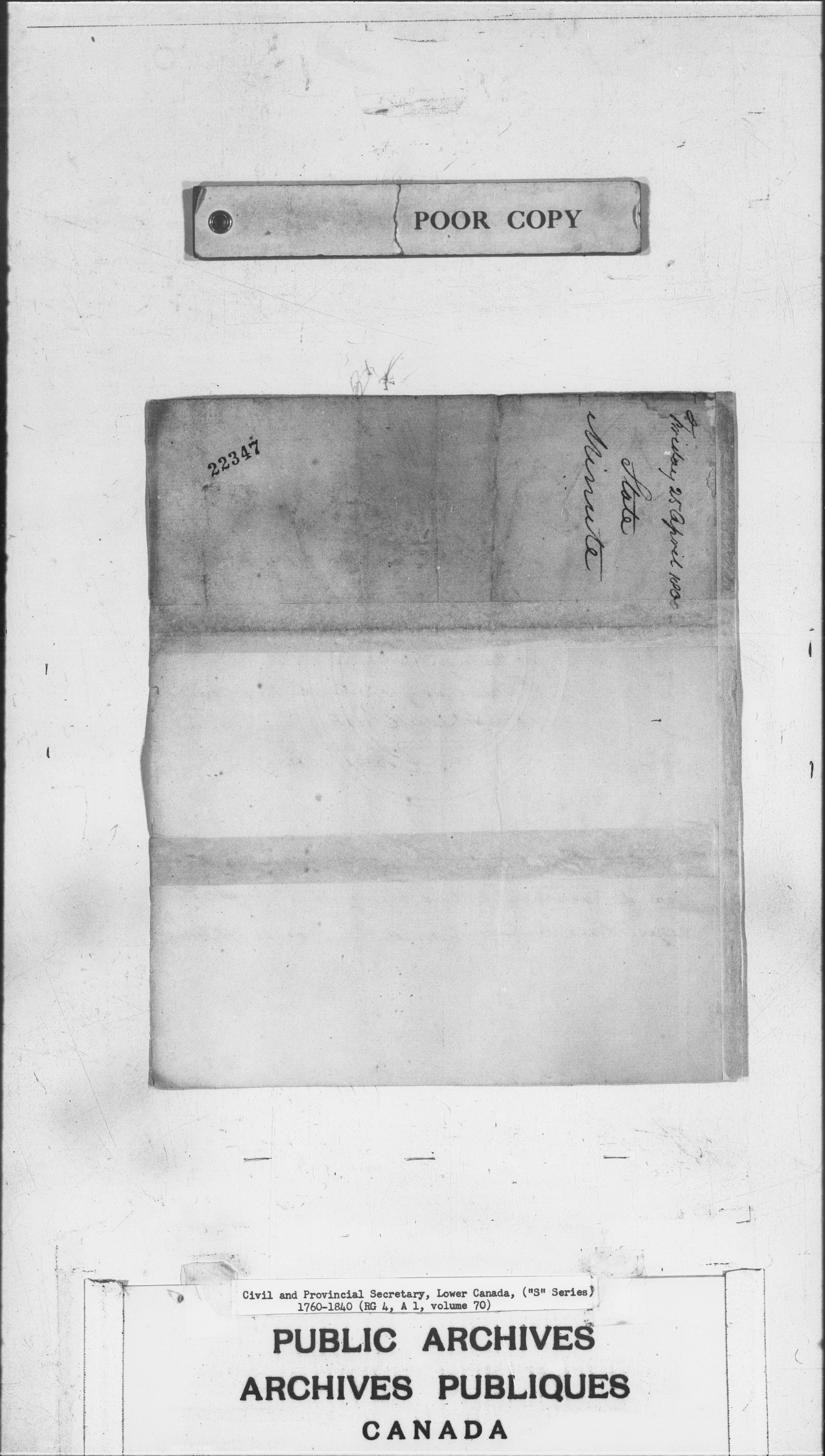 Civil Secretary's correspondence : A1 -S Series, Quebec and Lower Canada, 1760-1840 - 3012