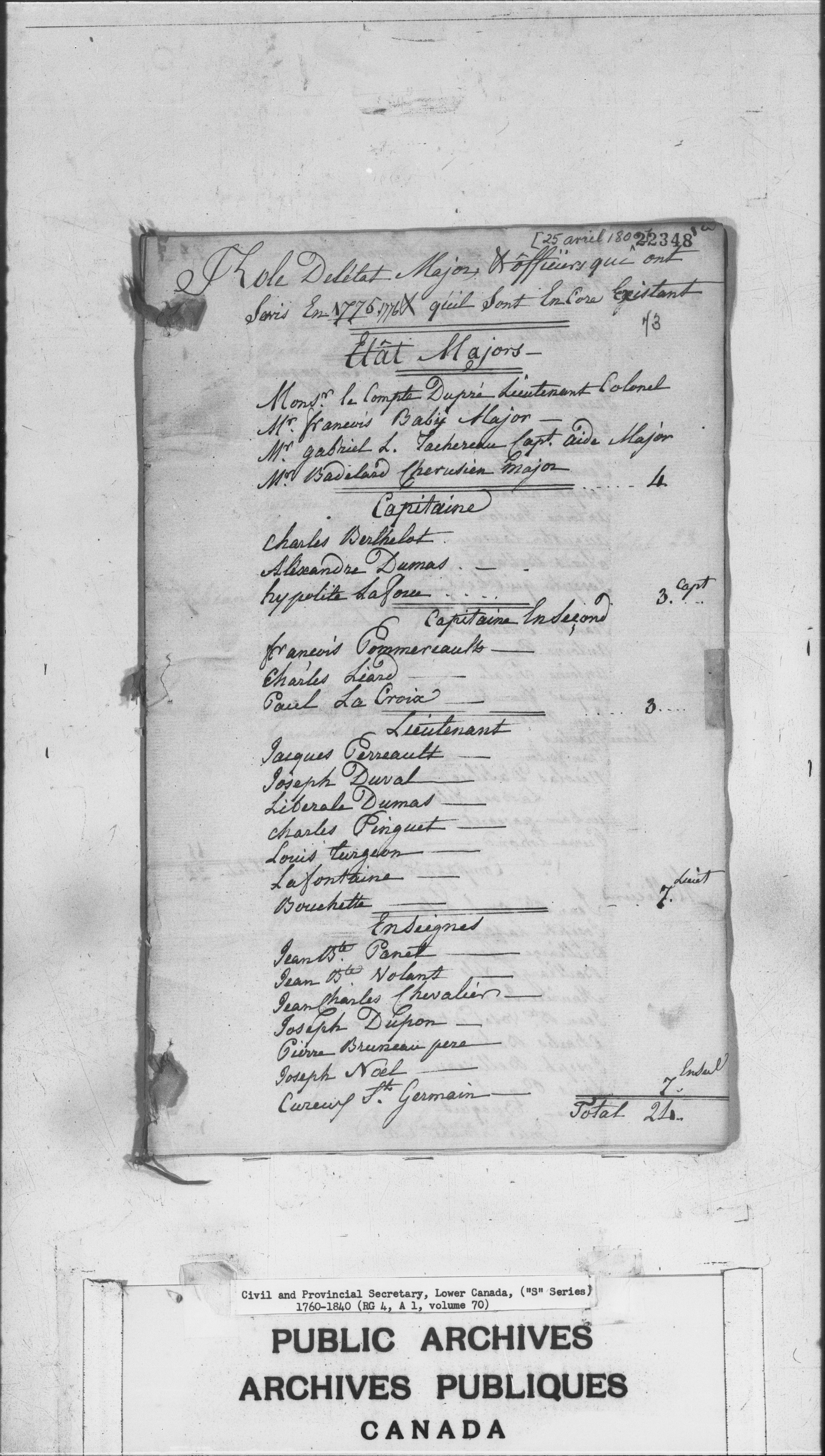 Civil Secretary's correspondence : A1 -S Series, Quebec and Lower Canada, 1760-1840 - 3012