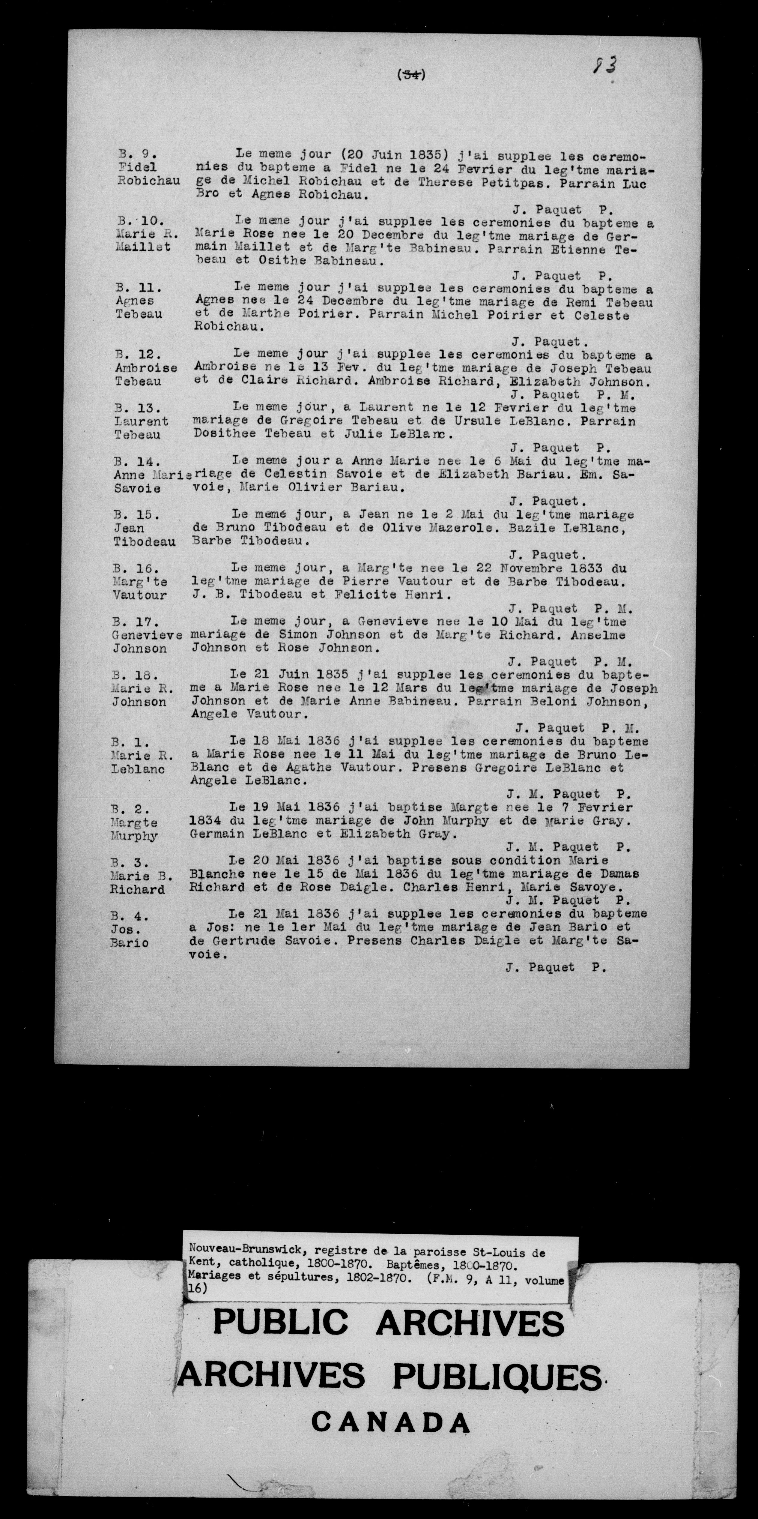 Parish registers: New Brunswick : C-3020