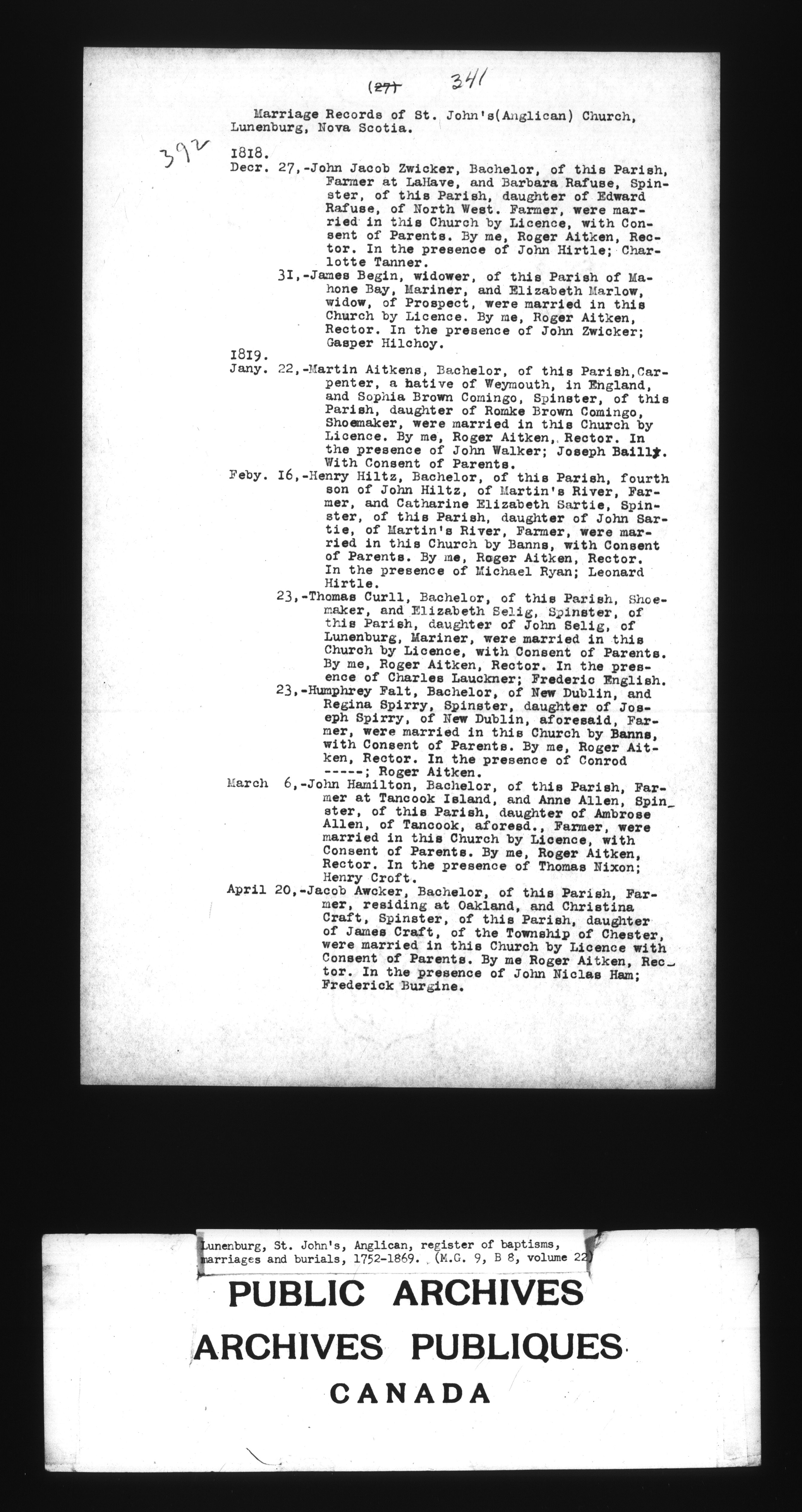 Lunenburg Baptist Church registers (Nova Scotia) - 3022