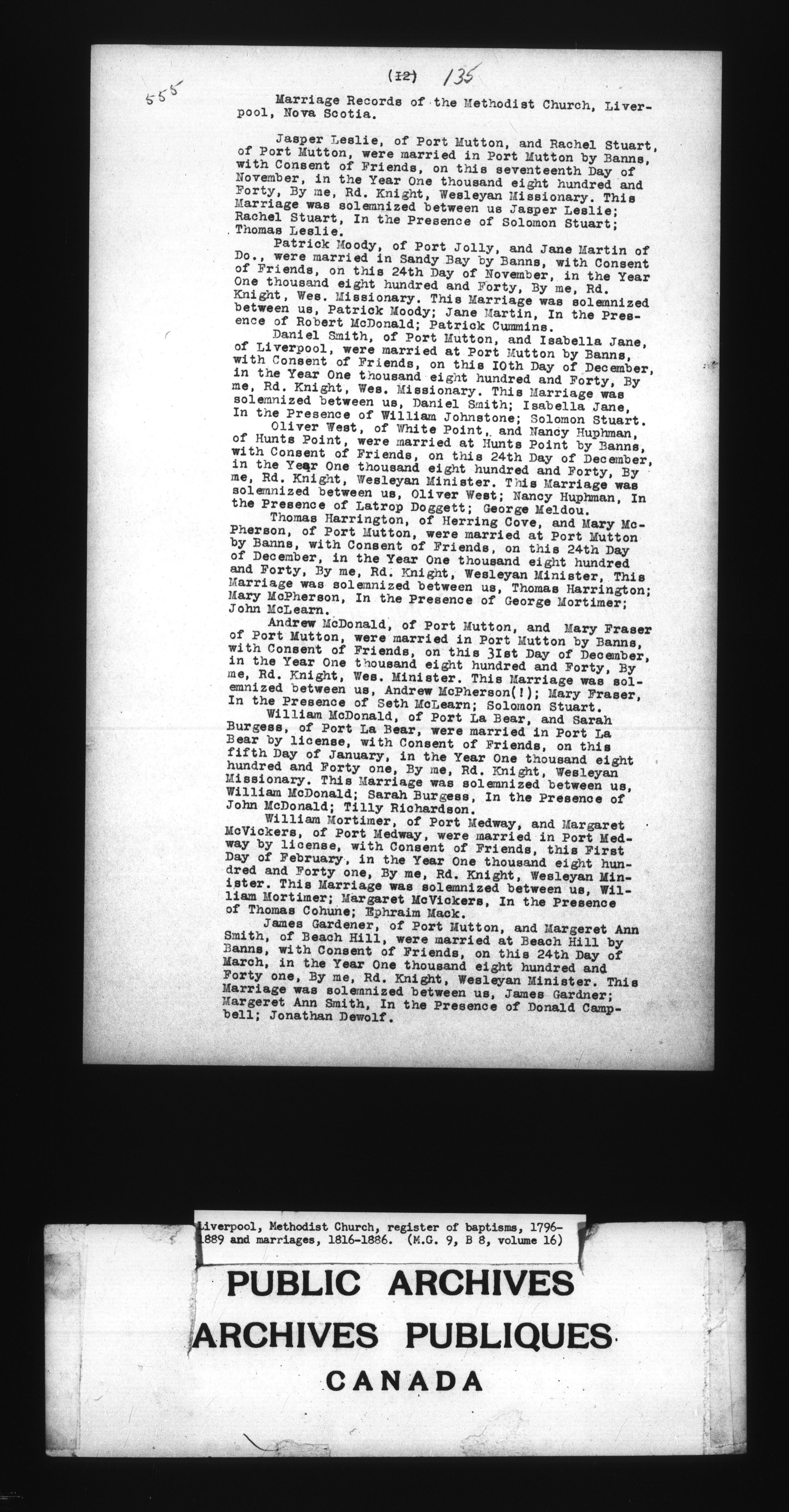 Lunenburg Baptist Church registers (Nova Scotia) - 3022