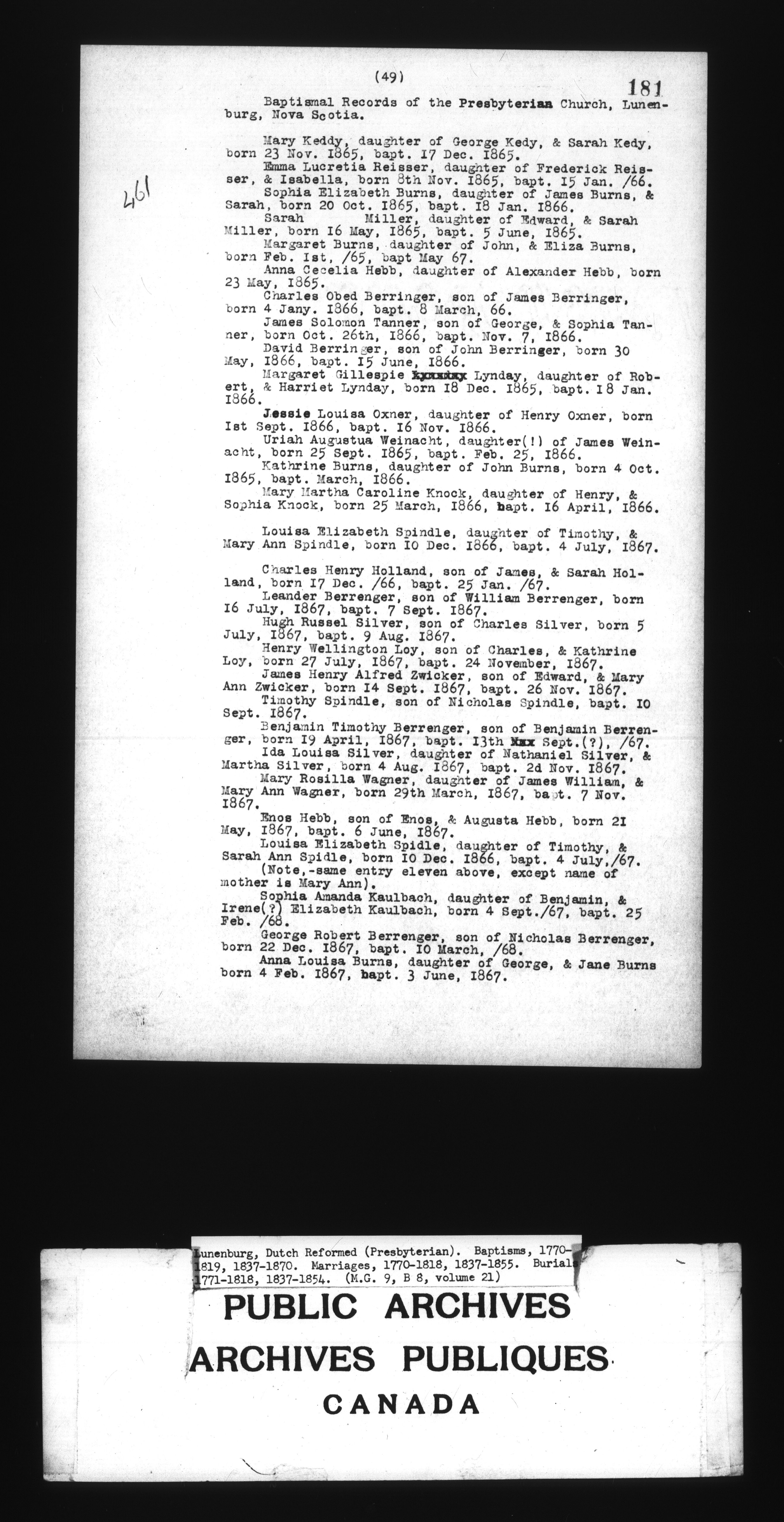 Lunenburg Baptist Church registers (Nova Scotia) - 3022