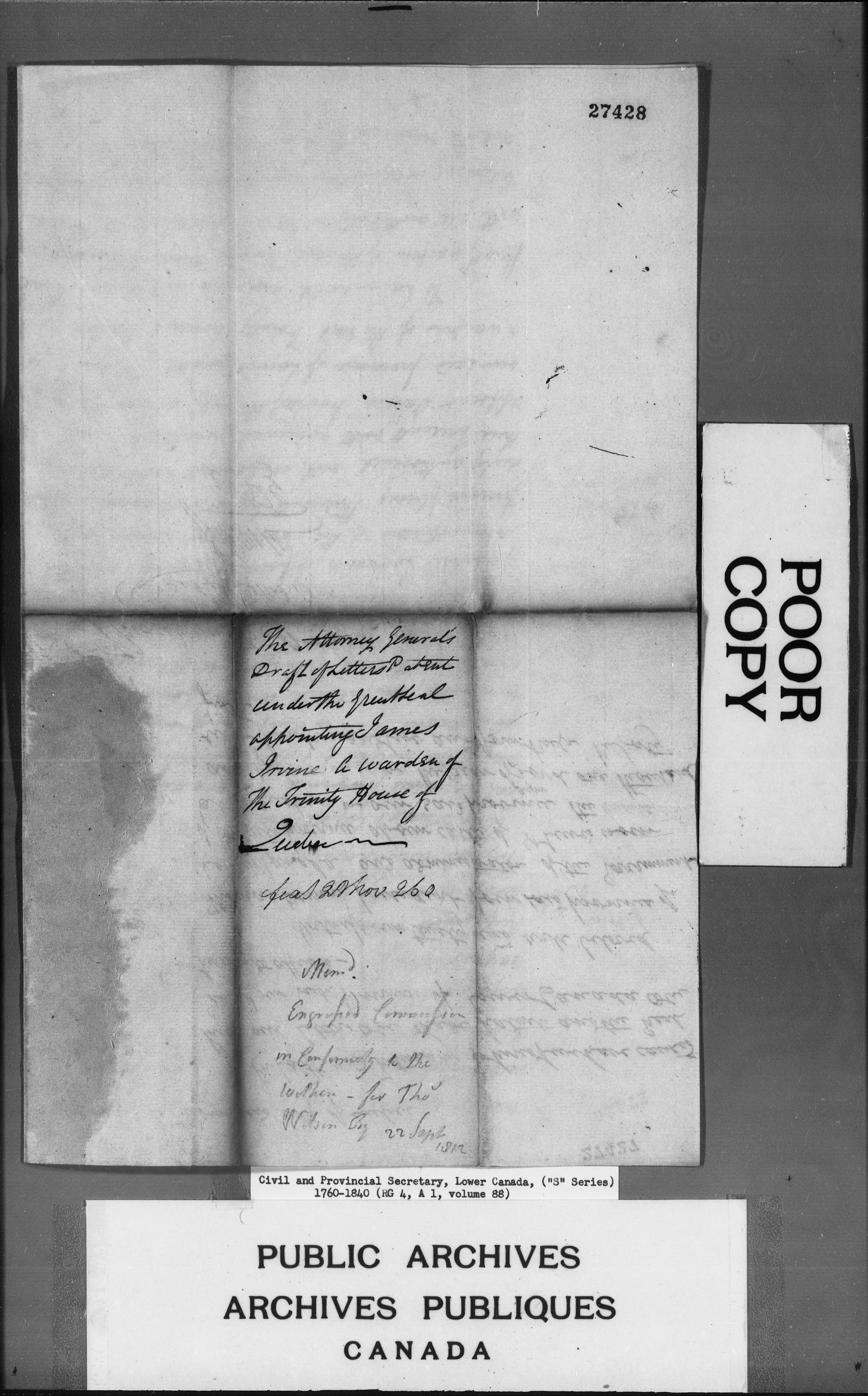 Civil Secretary's correspondence : A1 -S Series, Quebec and Lower Canada, 1760-1840 - 3033