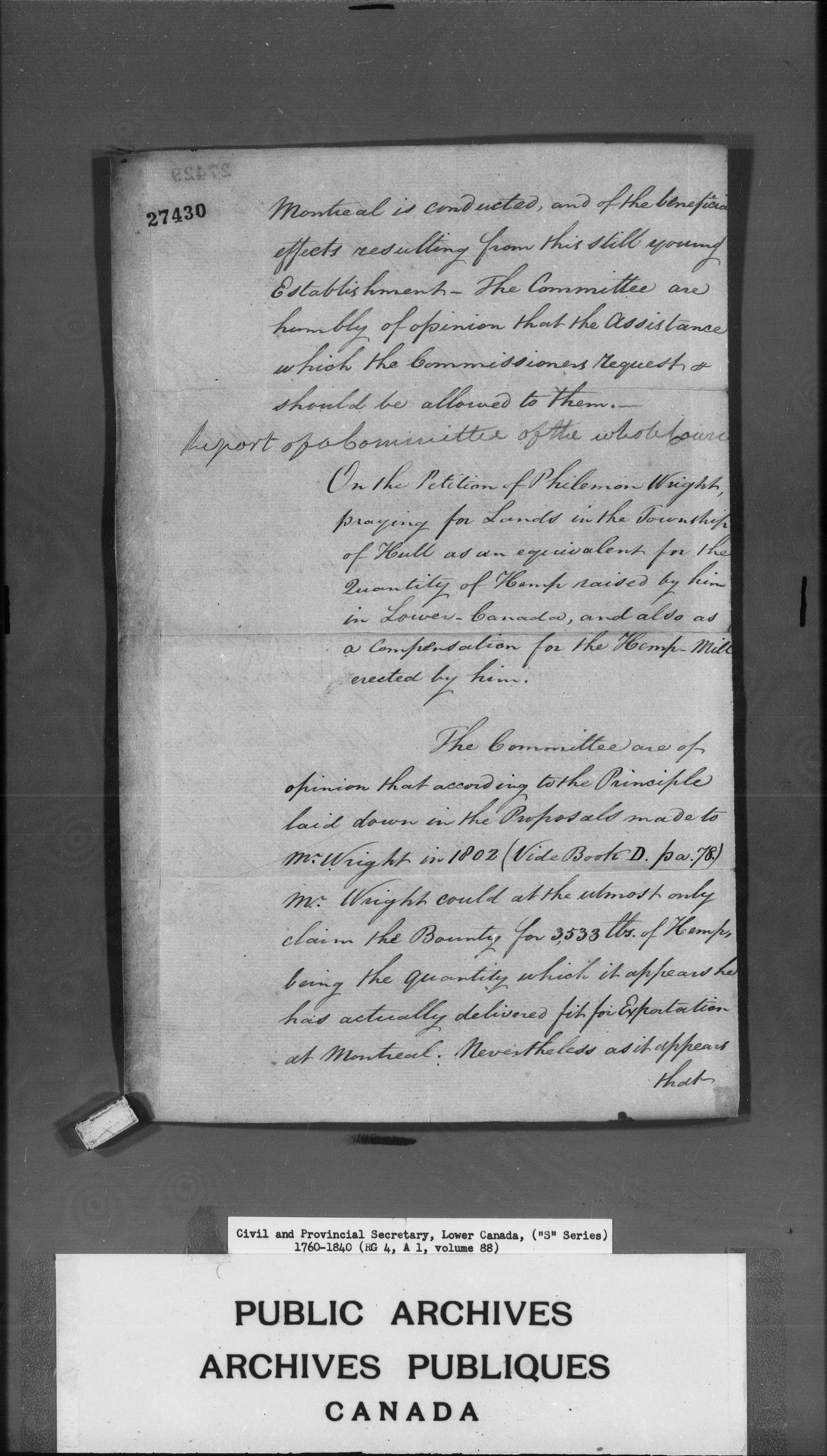 Civil Secretary's correspondence : A1 -S Series, Quebec and Lower Canada, 1760-1840 - 3033