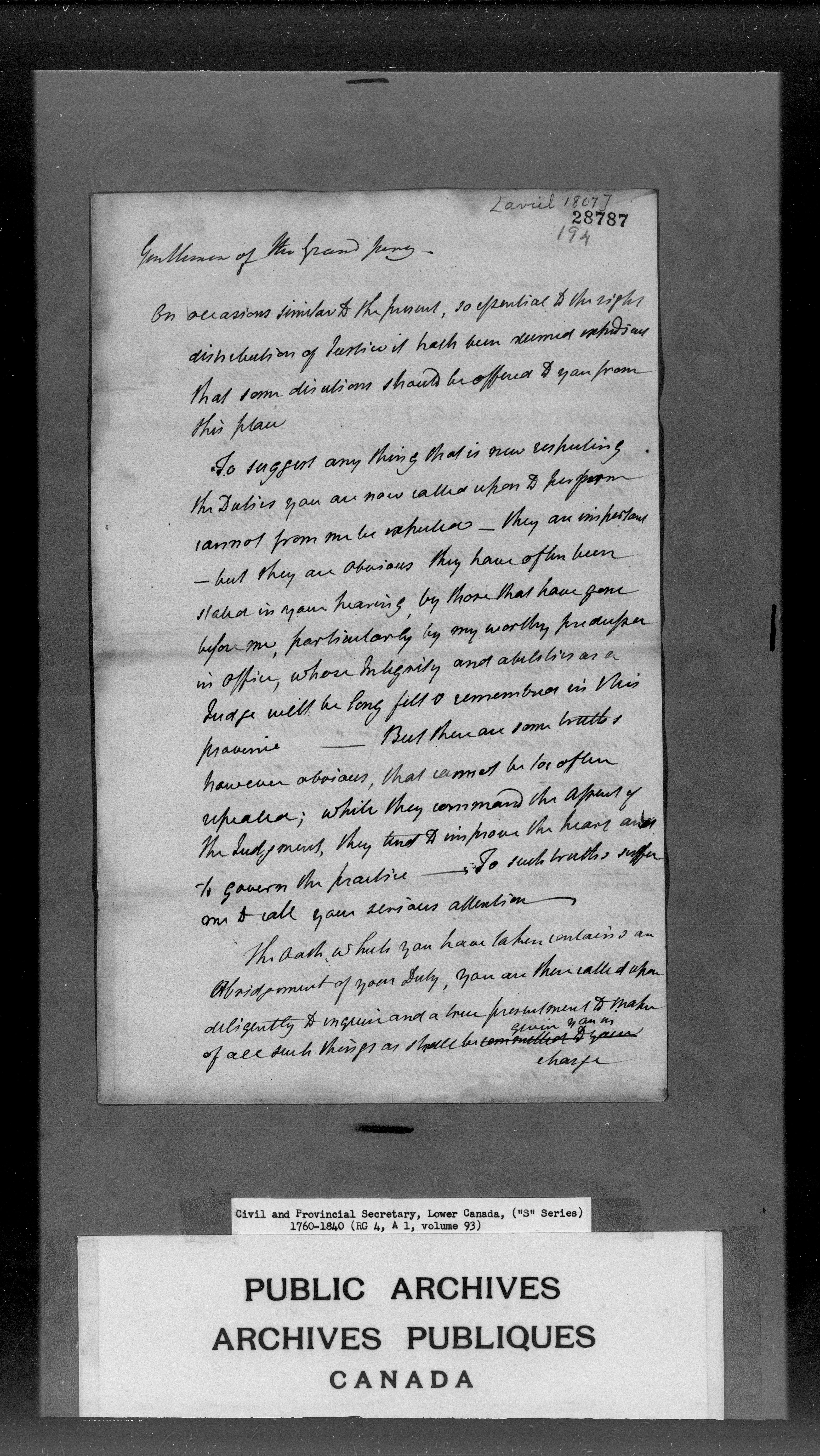 Civil Secretary's correspondence : A1 -S Series, Quebec and Lower Canada, 1760-1840 : C-3034