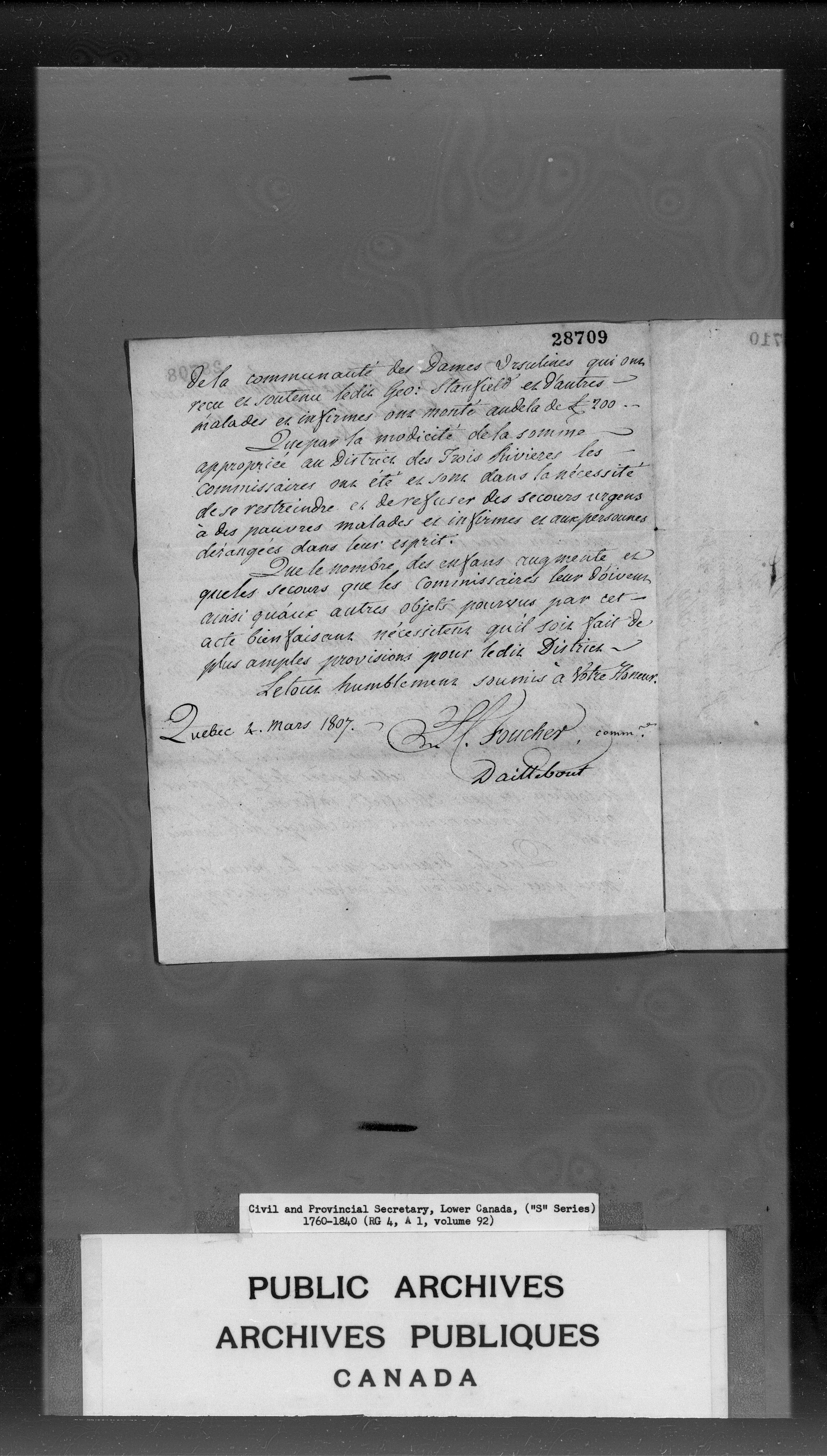 Civil Secretary's correspondence : A 1 - S Series : Quebec and Lower Canada : C-3034