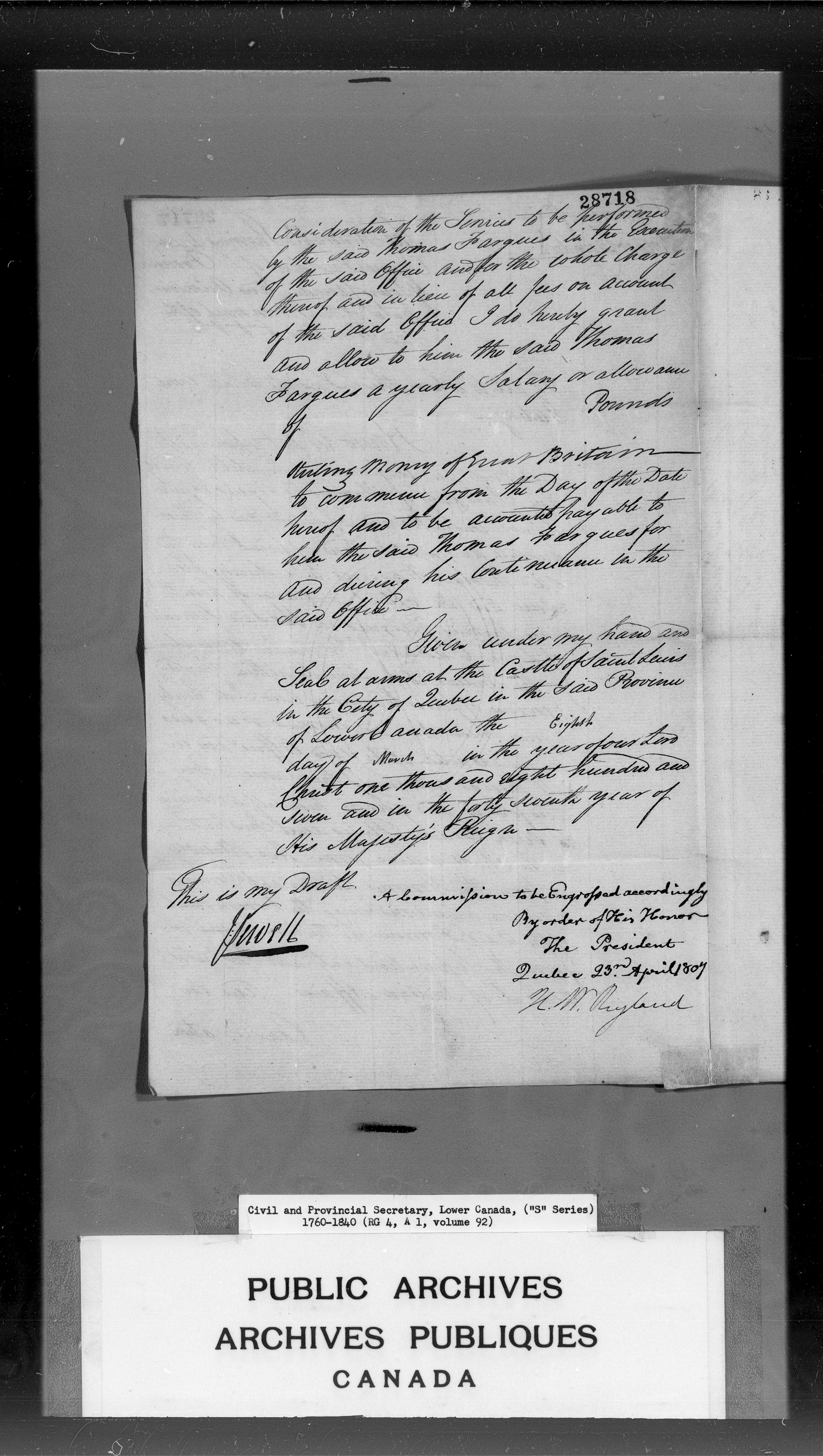 Civil Secretary's correspondence : A 1 - S Series : Quebec and Lower Canada : C-3034