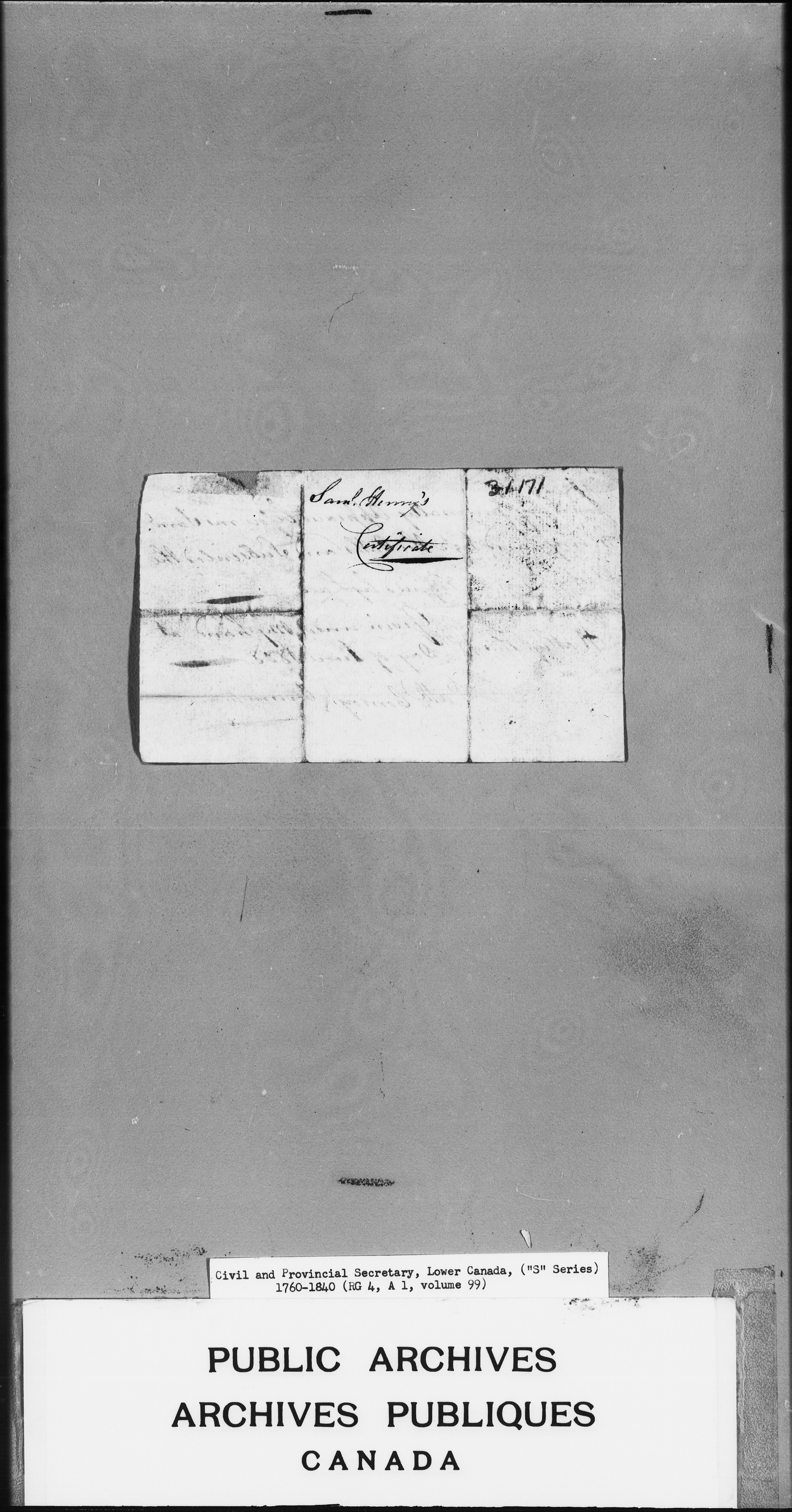 Civil Secretary's correspondence : A1 -S Series, Quebec and Lower Canada, 1760-1840 - 3035