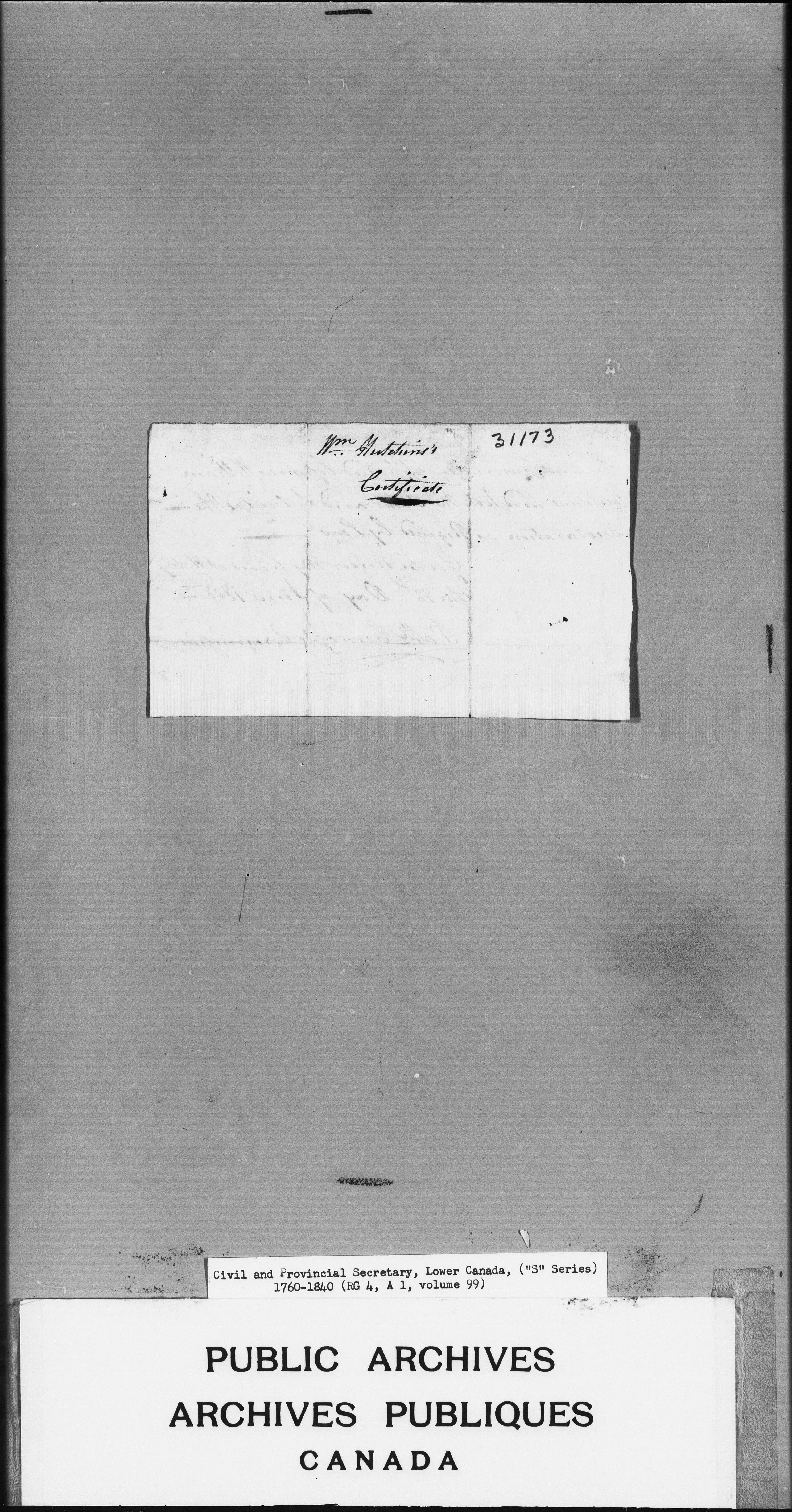 Civil Secretary's correspondence : A1 -S Series, Quebec and Lower Canada, 1760-1840 - 3035