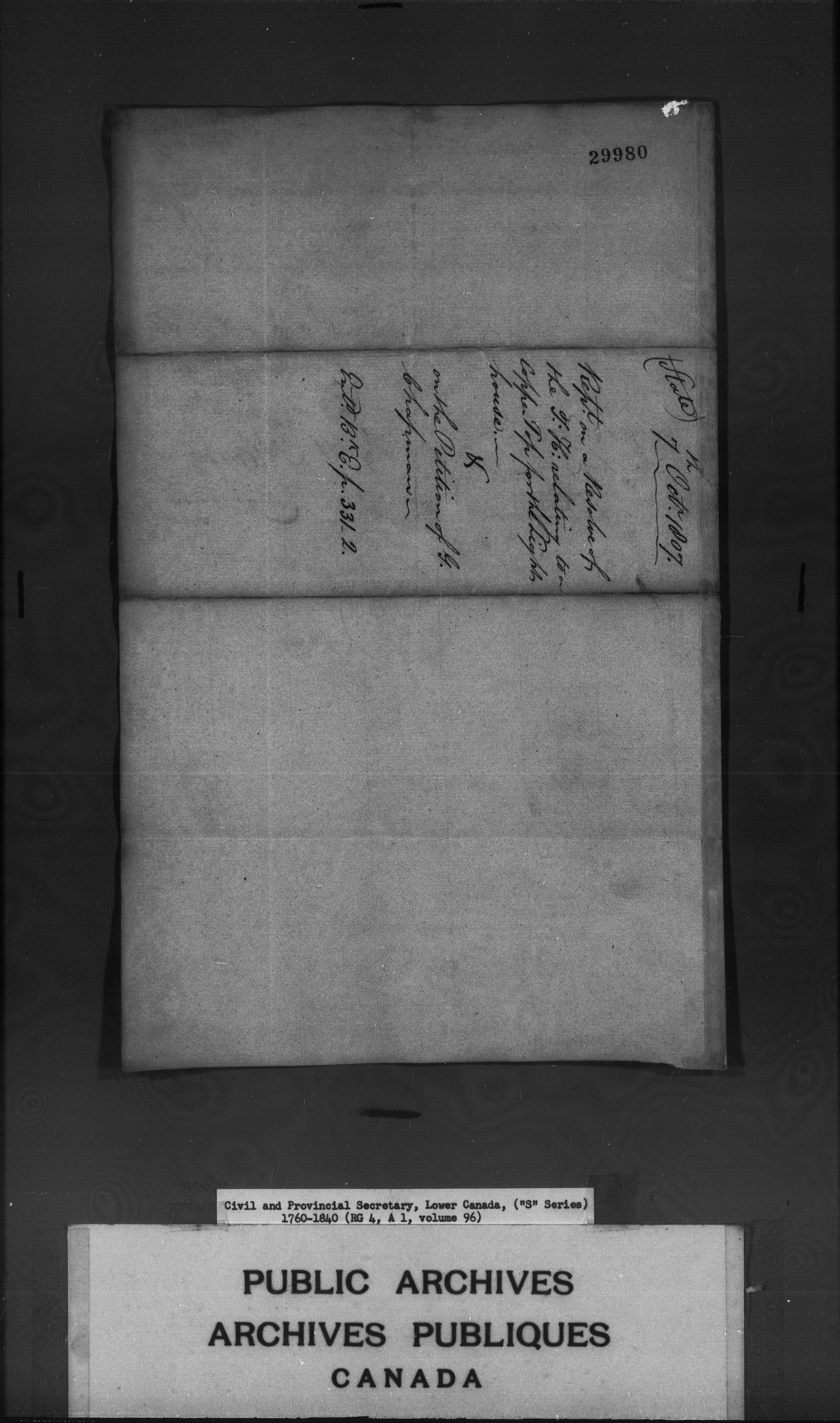 Civil Secretary's correspondence : A1 -S Series, Quebec and Lower Canada, 1760-1840 - 3035