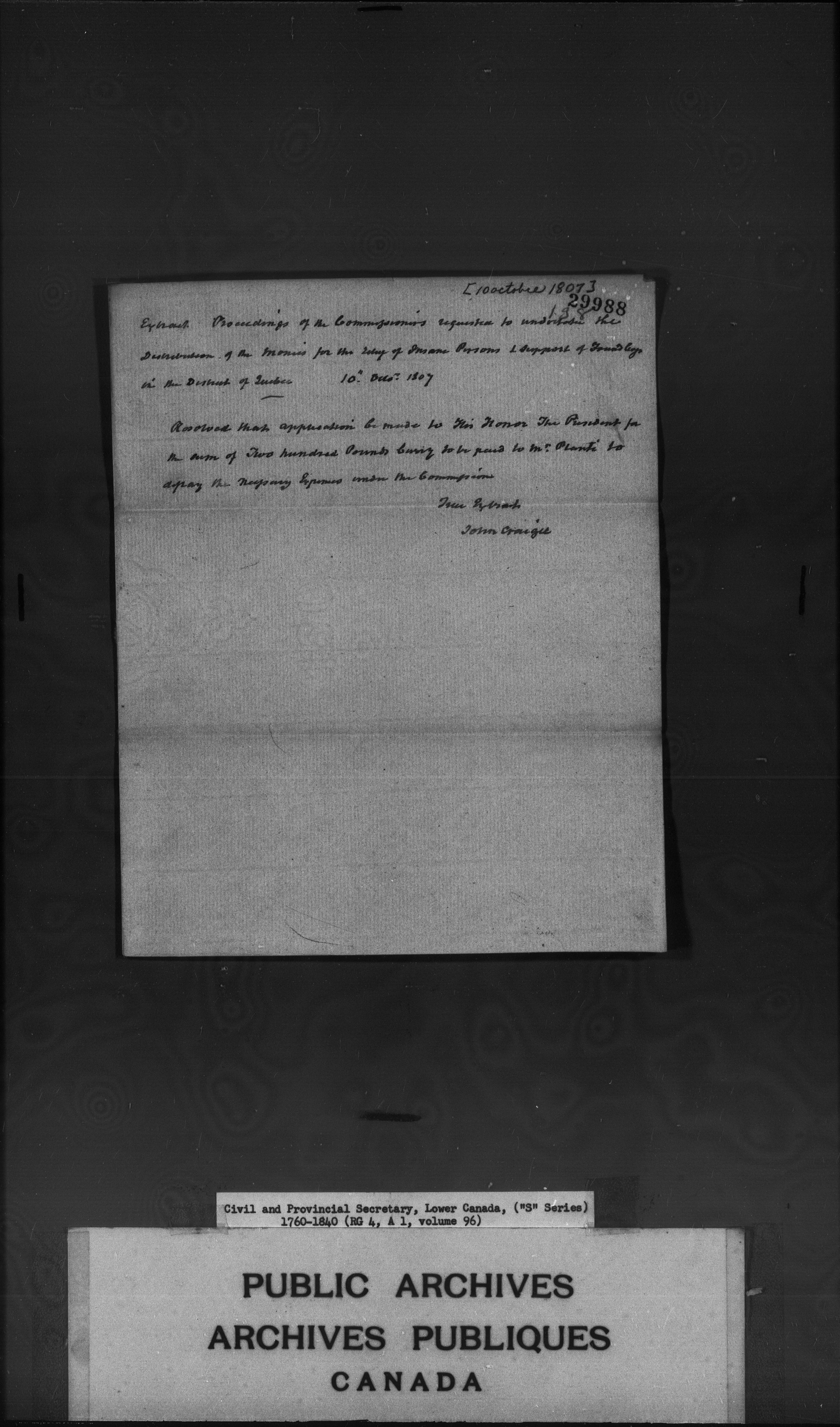 Civil Secretary's correspondence : A1 -S Series, Quebec and Lower Canada, 1760-1840 - 3035