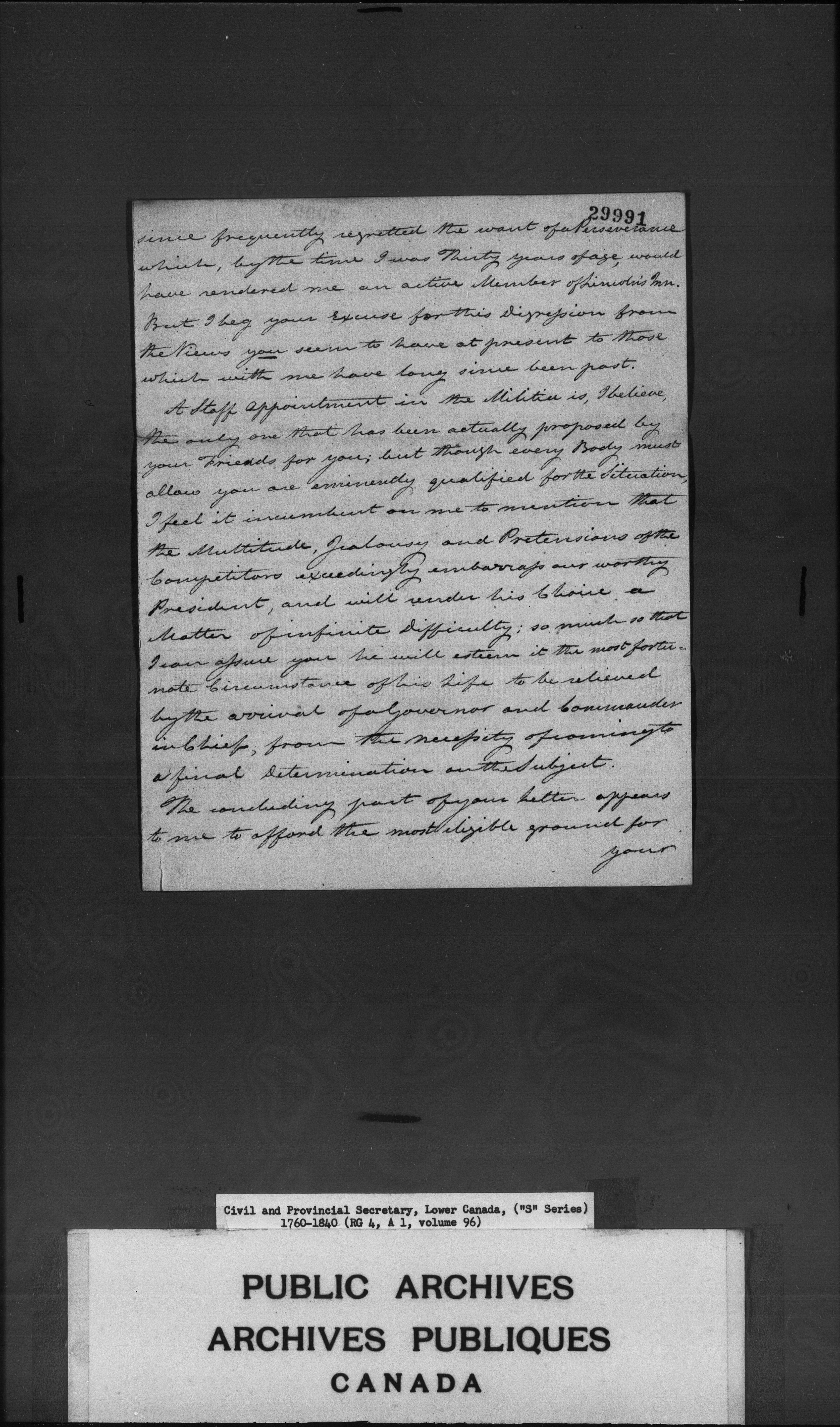 Civil Secretary's correspondence : A1 -S Series, Quebec and Lower Canada, 1760-1840 - 3035