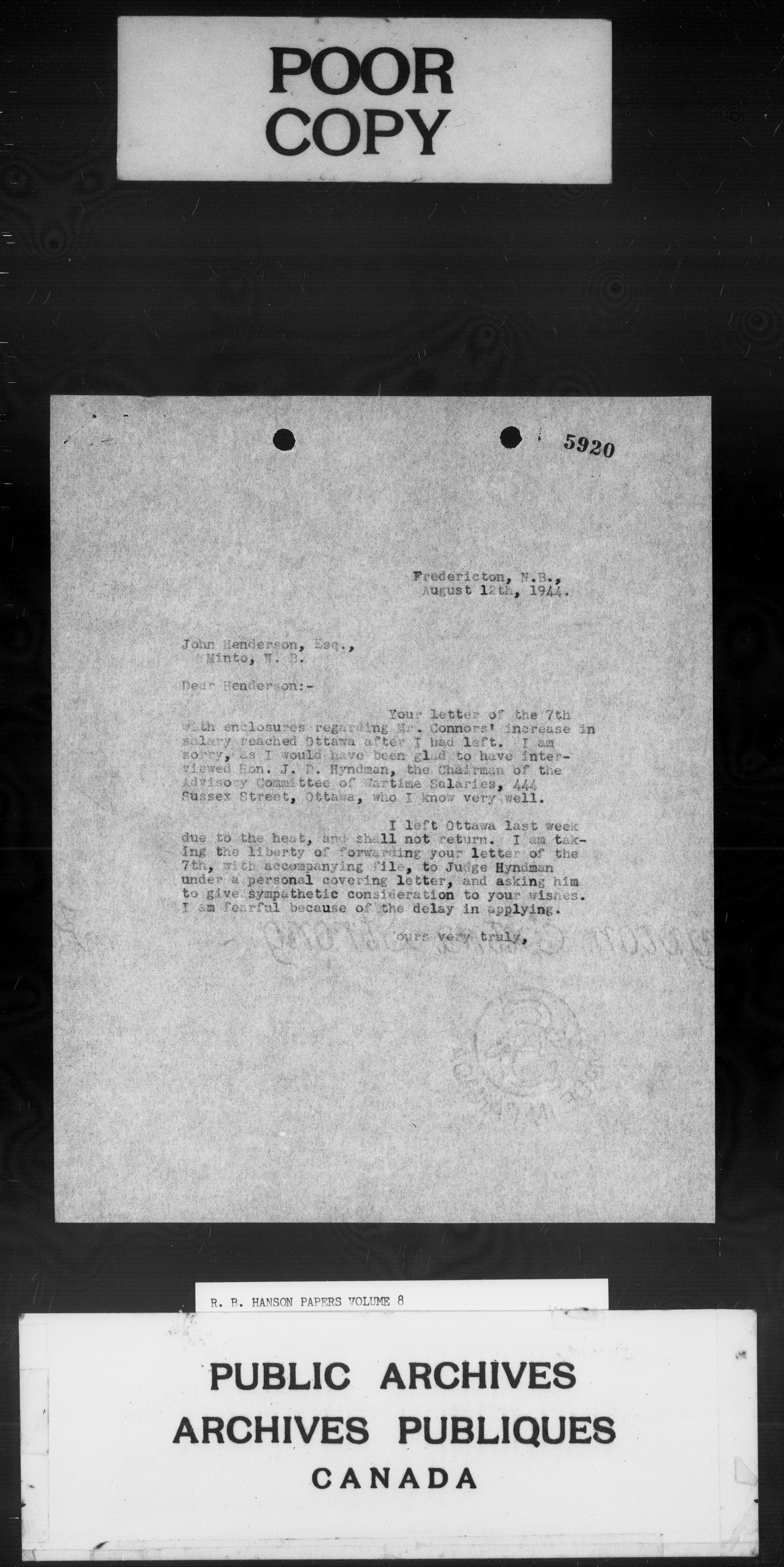 Richard Burpee Hanson fonds : C-3080