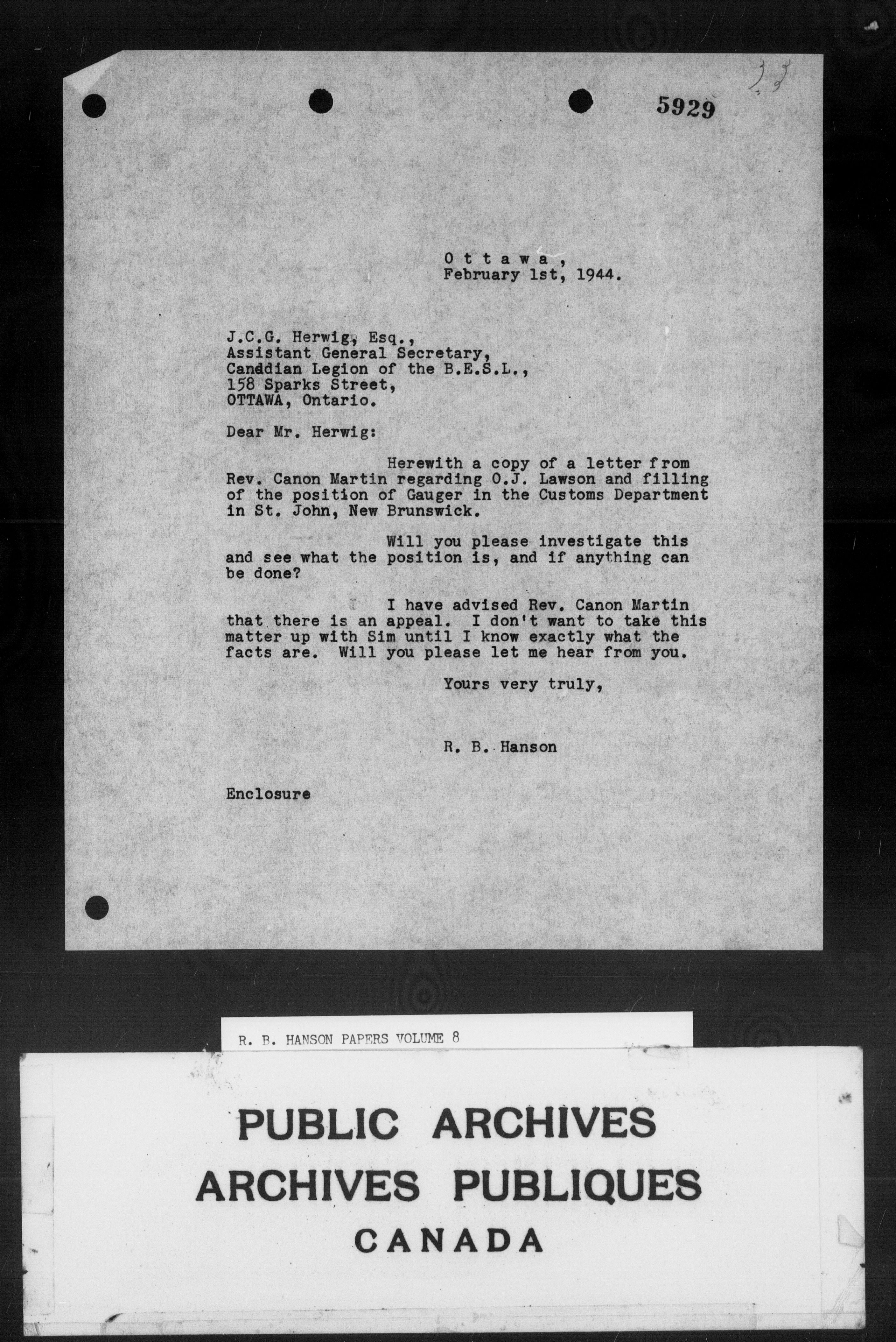 Richard Burpee Hanson fonds : C-3080