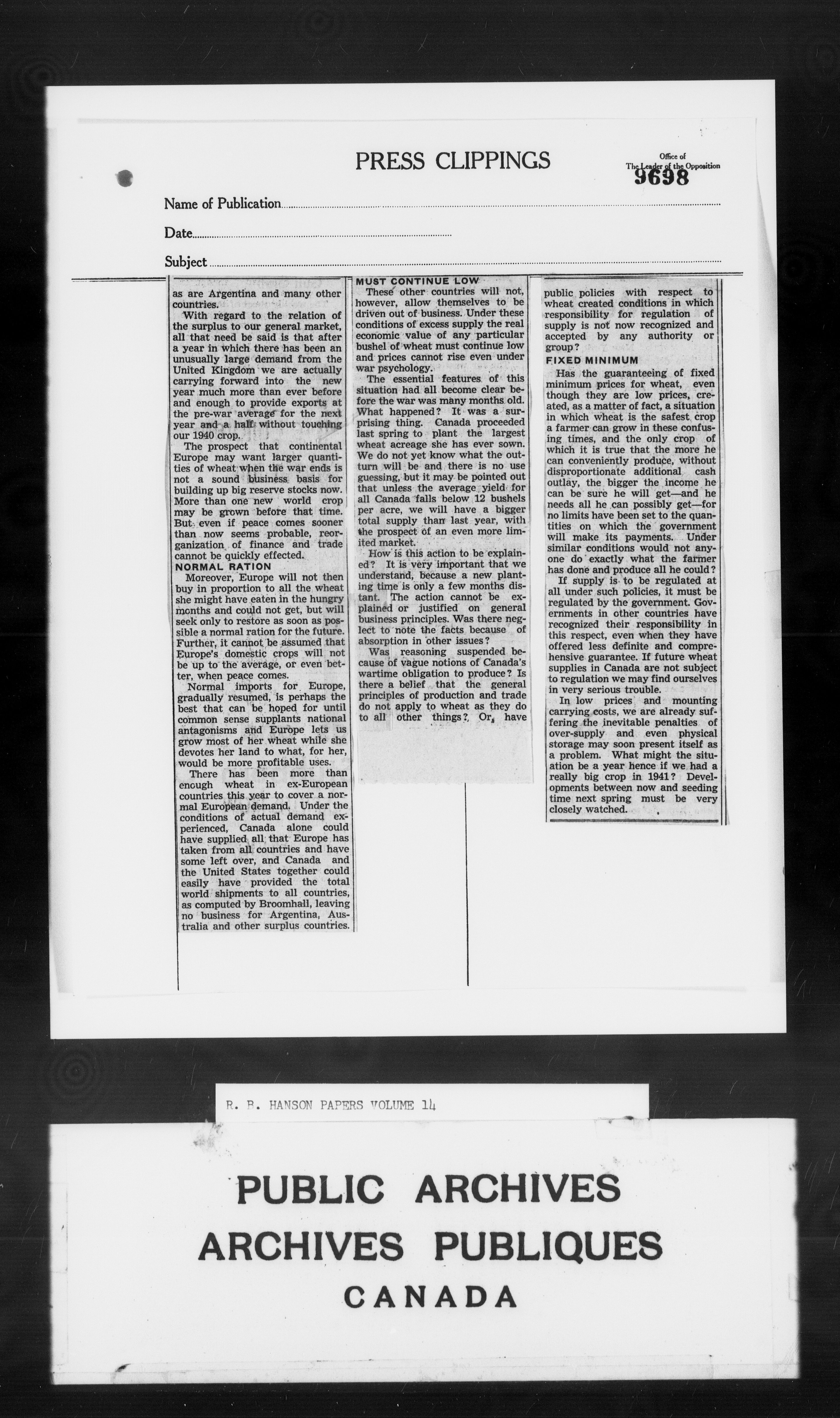 Richard Burpee Hanson : Subject files - 3083