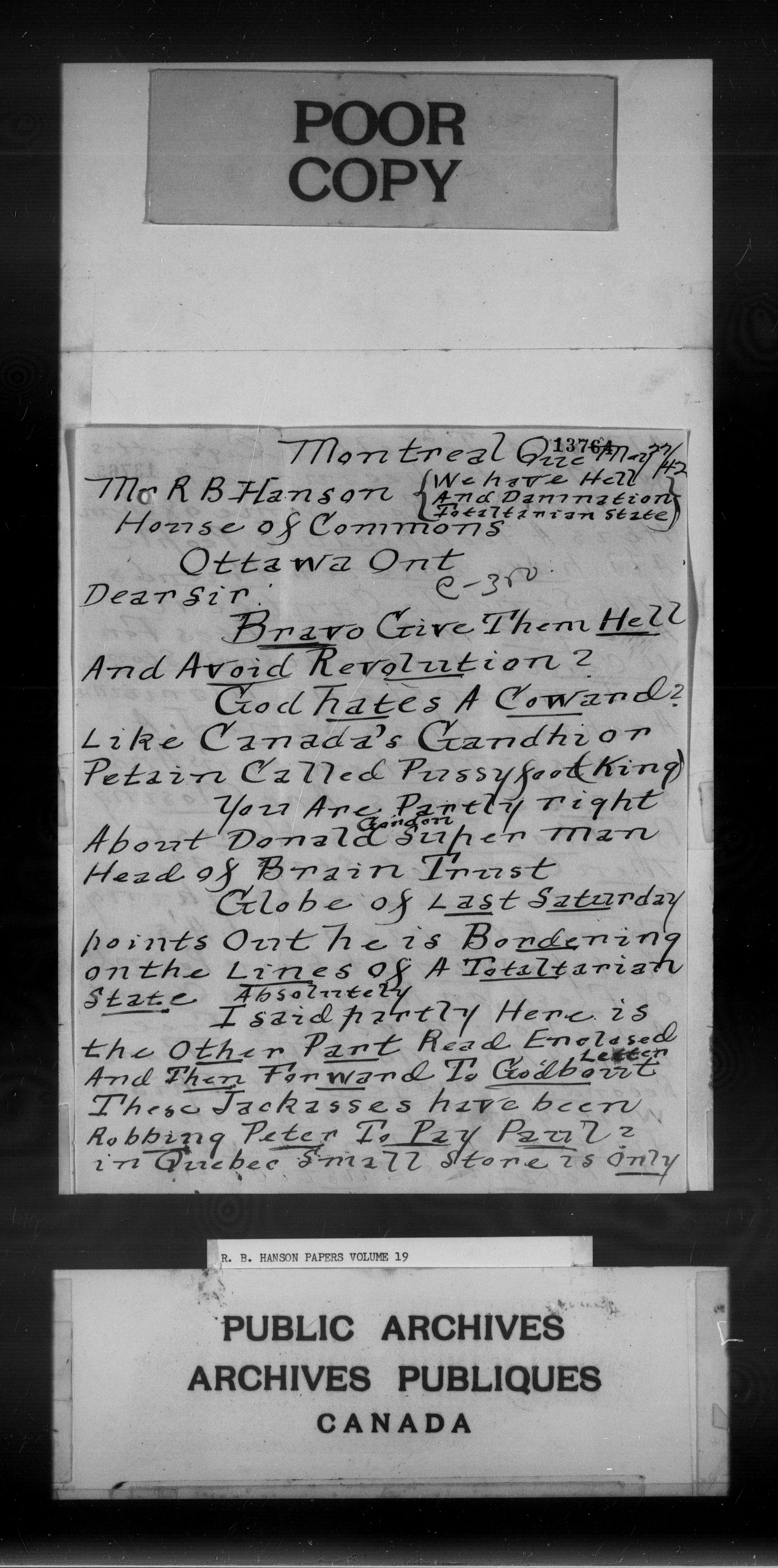 Richard Burpee Hanson fonds : C-3087