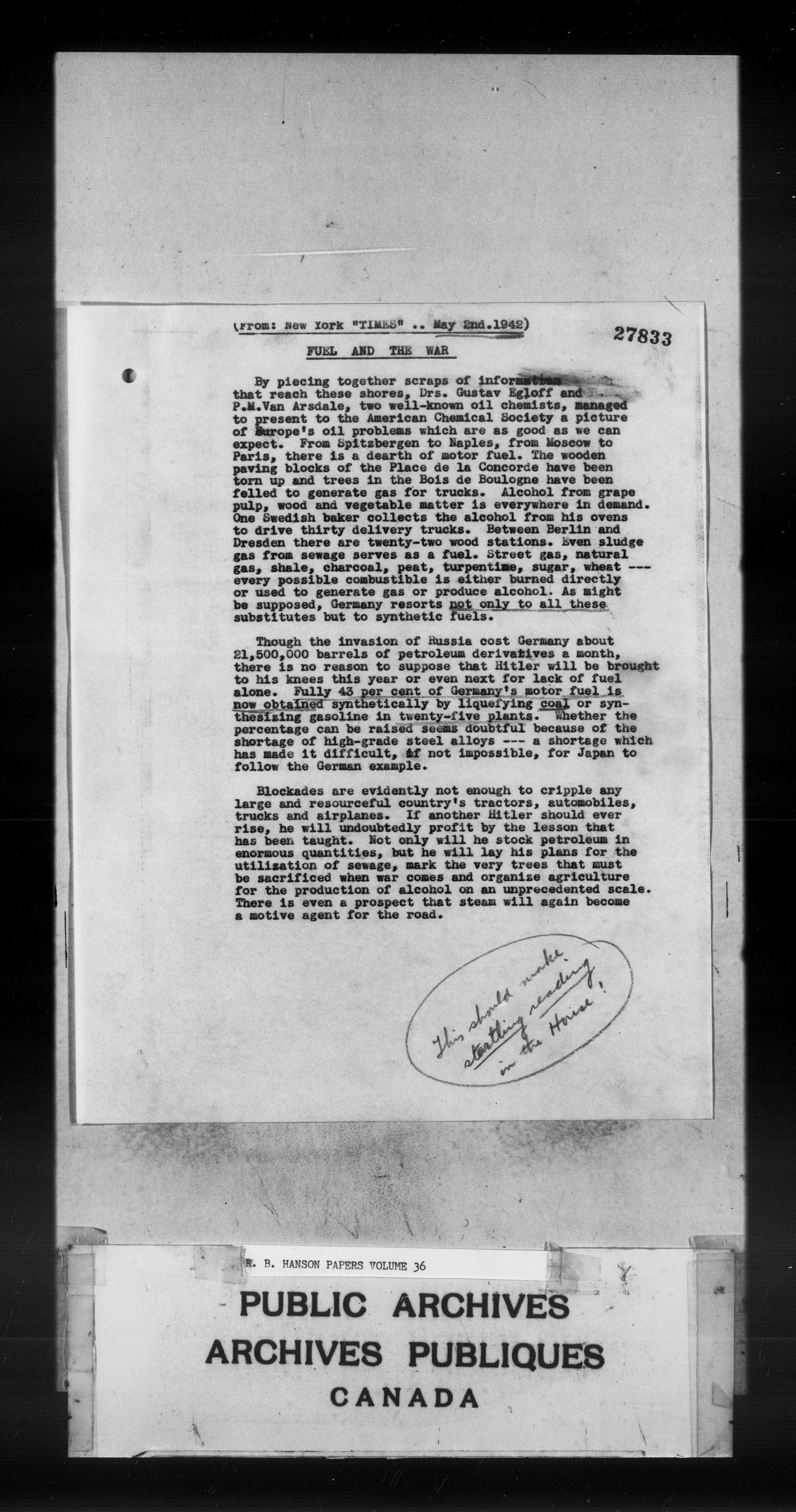 Richard Burpee Hanson : Subject files - 3098