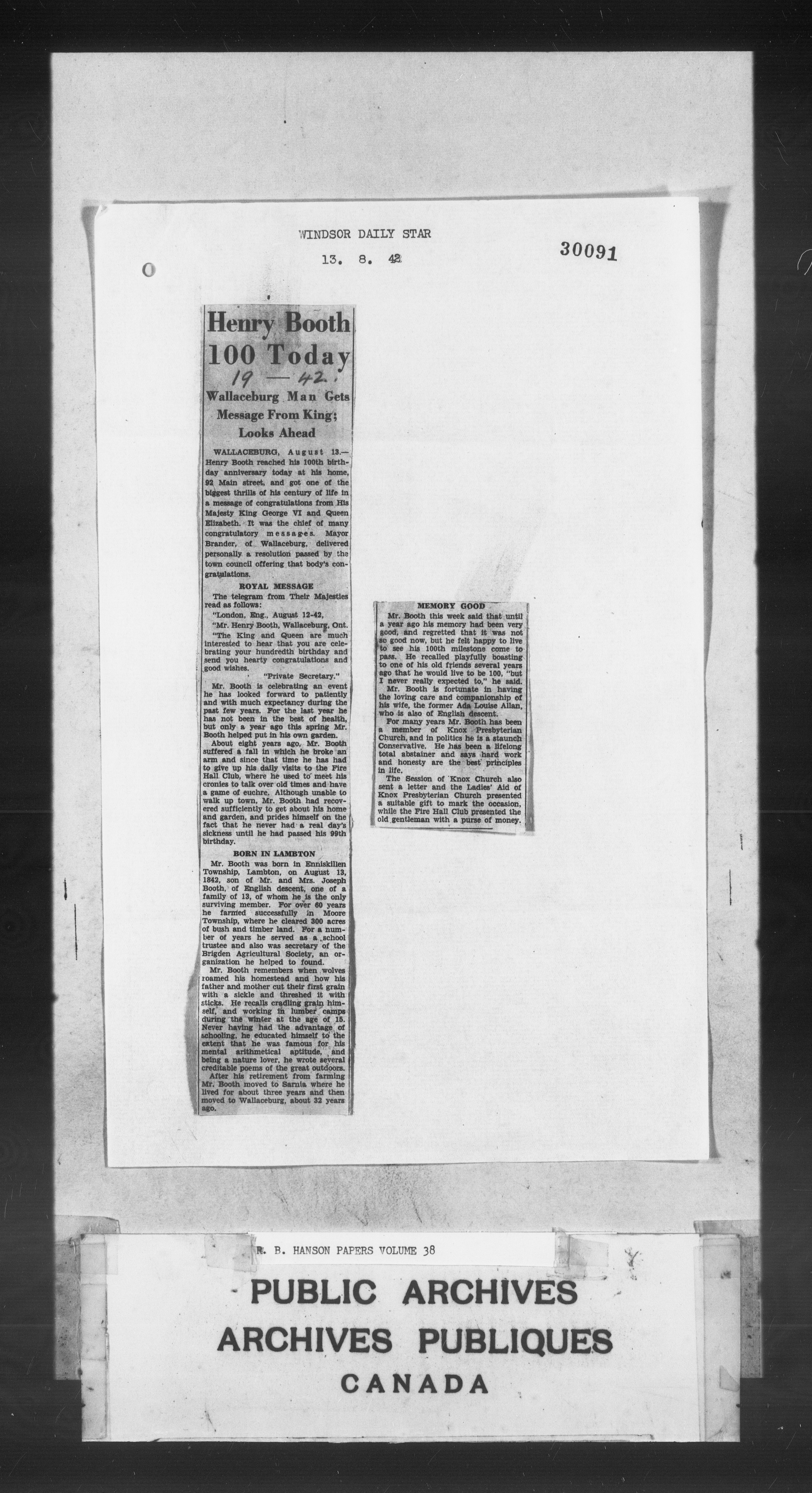 Richard Burpee Hanson : Subject files - 3099