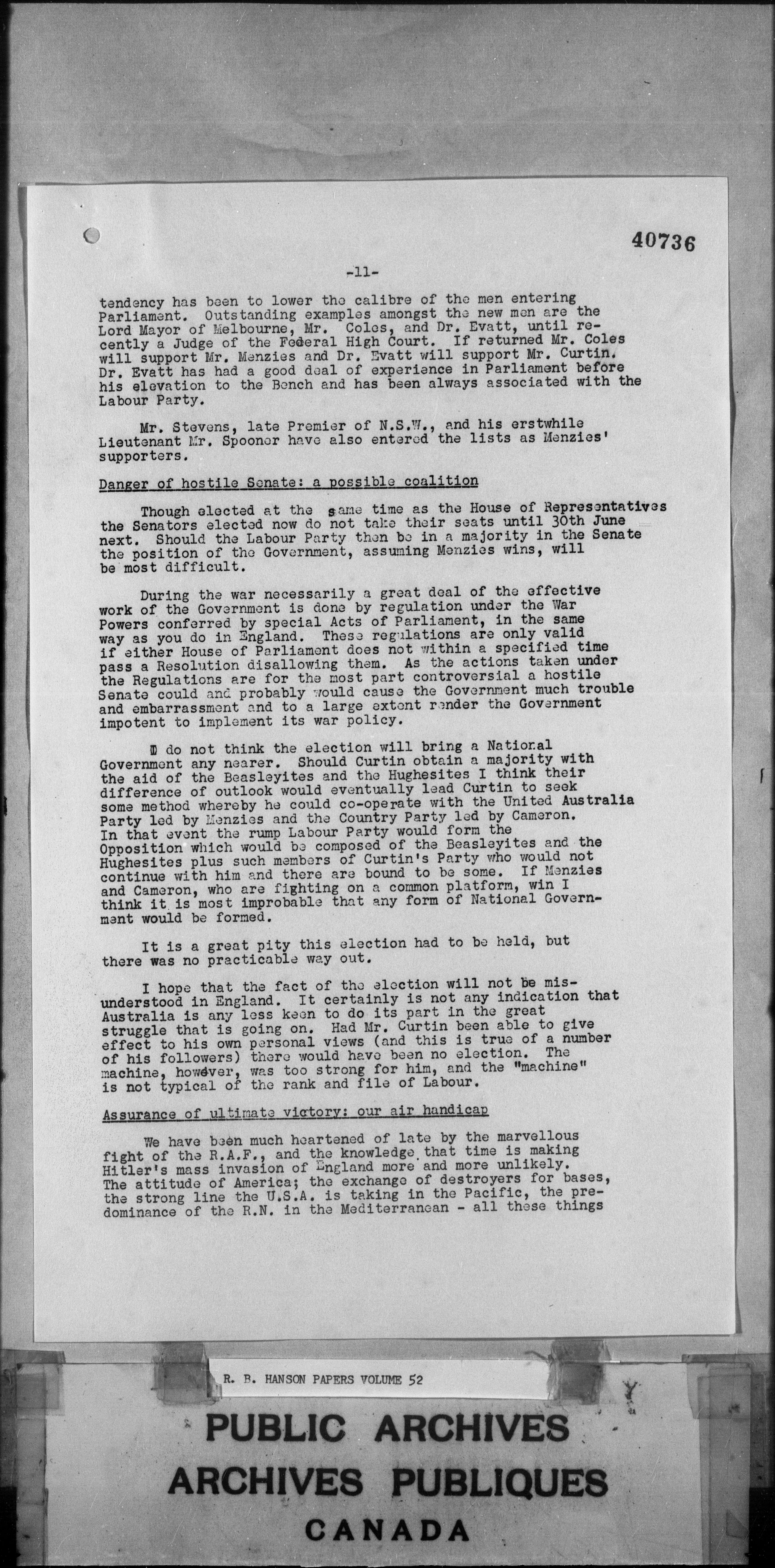 Richard Burpee Hanson : Subject files - 3108