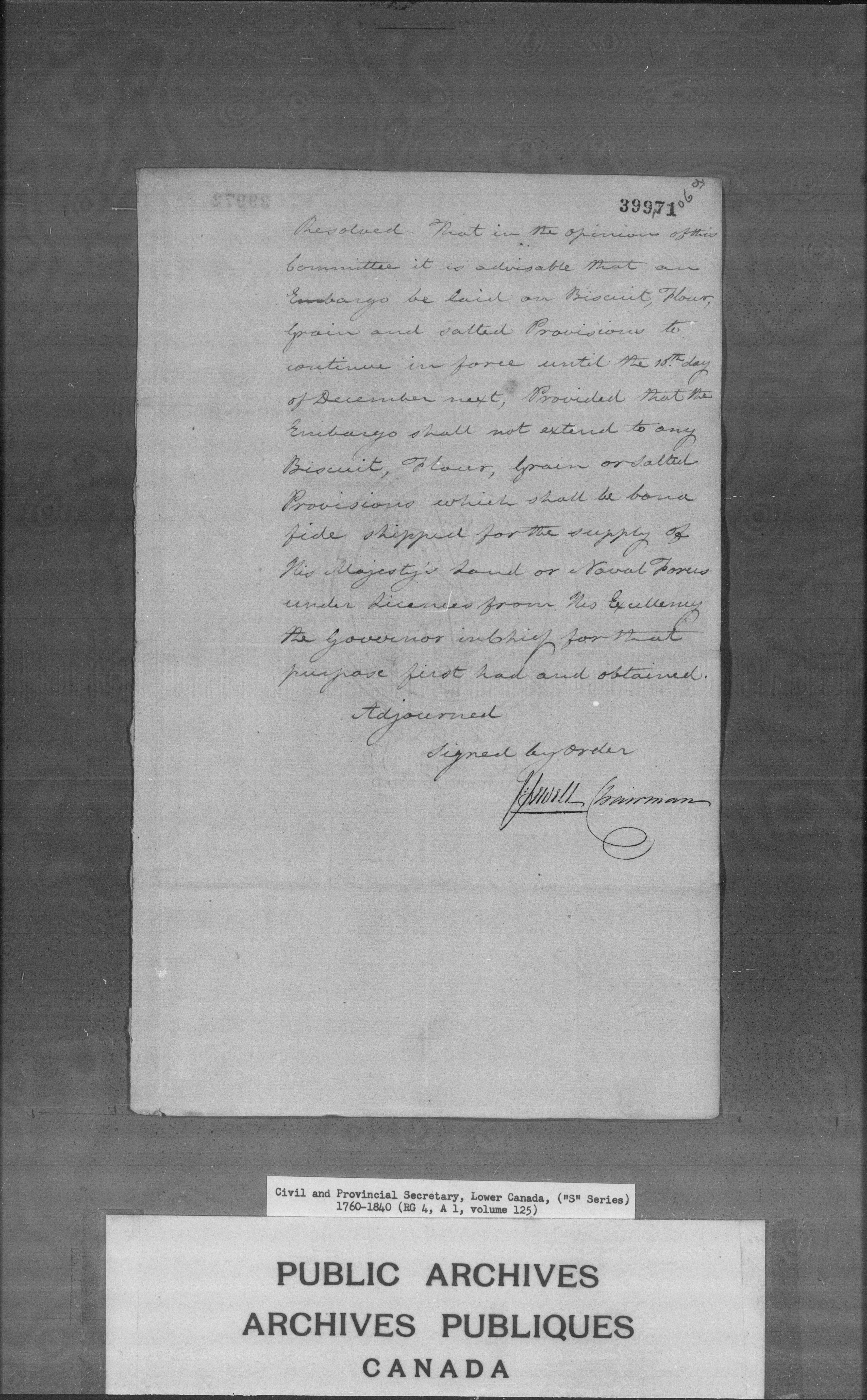 Civil Secretary's correspondence : A1 -S Series, Quebec and Lower Canada, 1760-1840 - 3117