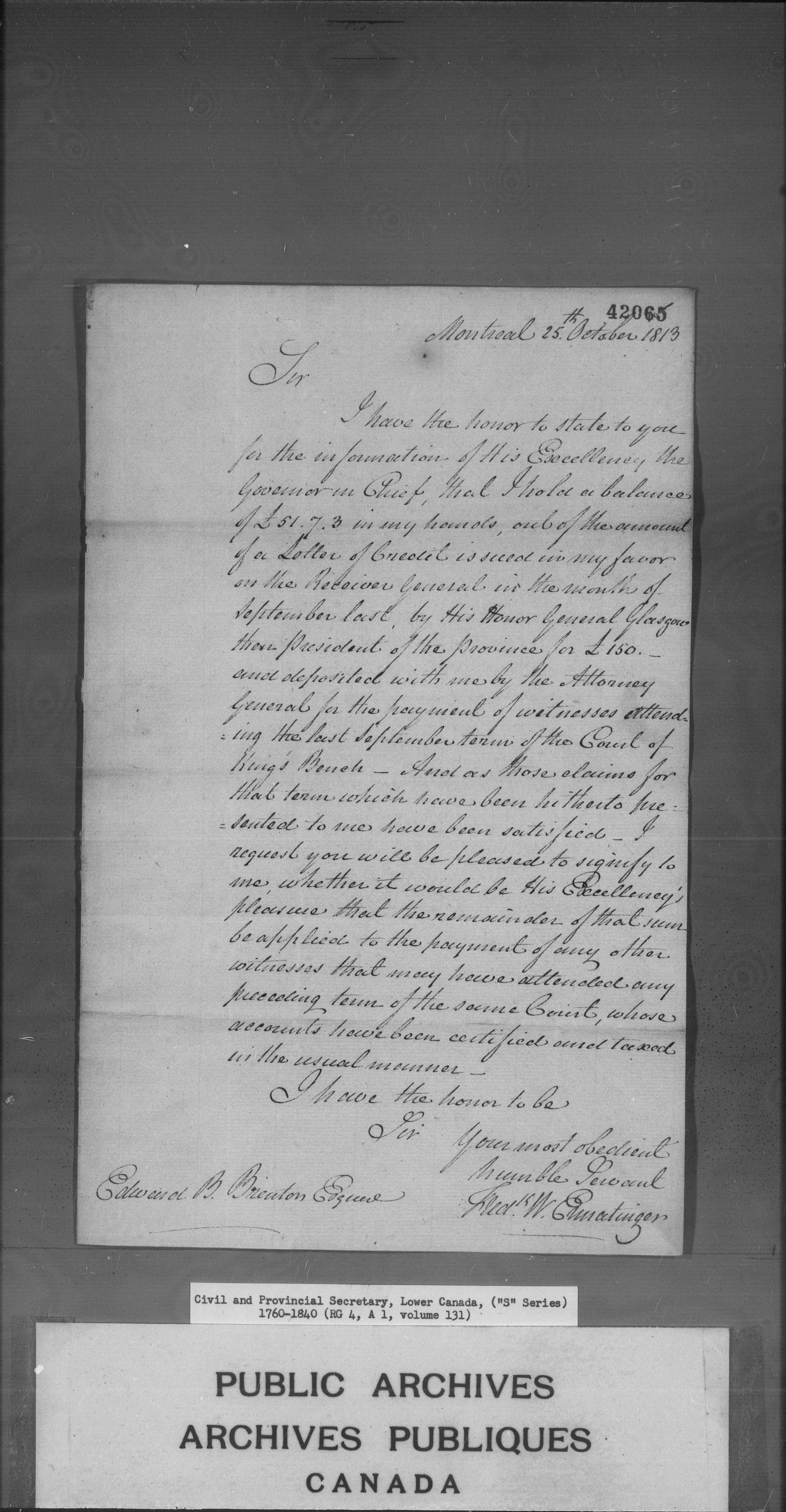 Civil Secretary's correspondence : A 1 - S Series : Quebec and Lower Canada : C-3118