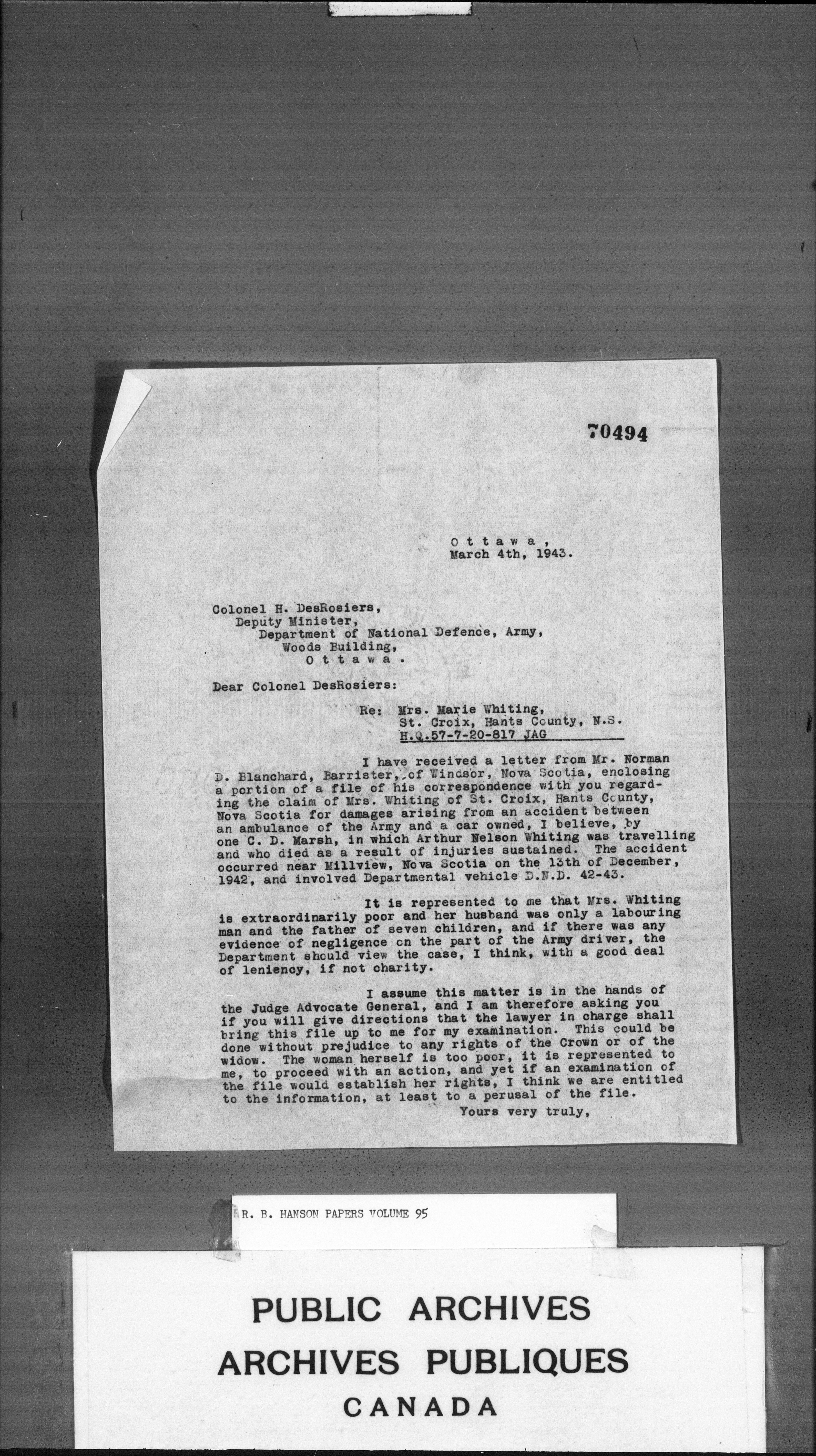 Richard Burpee Hanson : Subject files - 3139