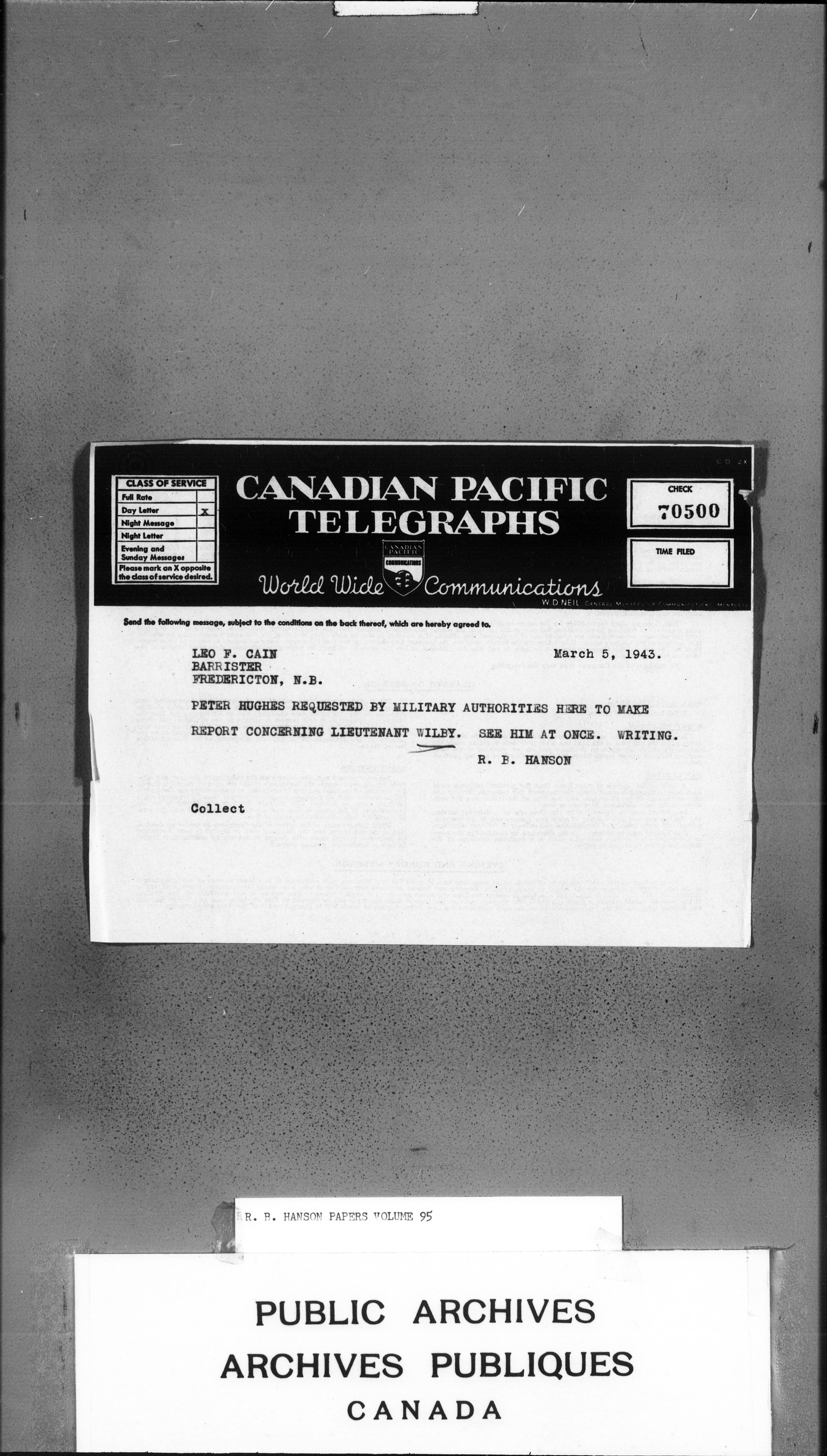Richard Burpee Hanson fonds : C-3139