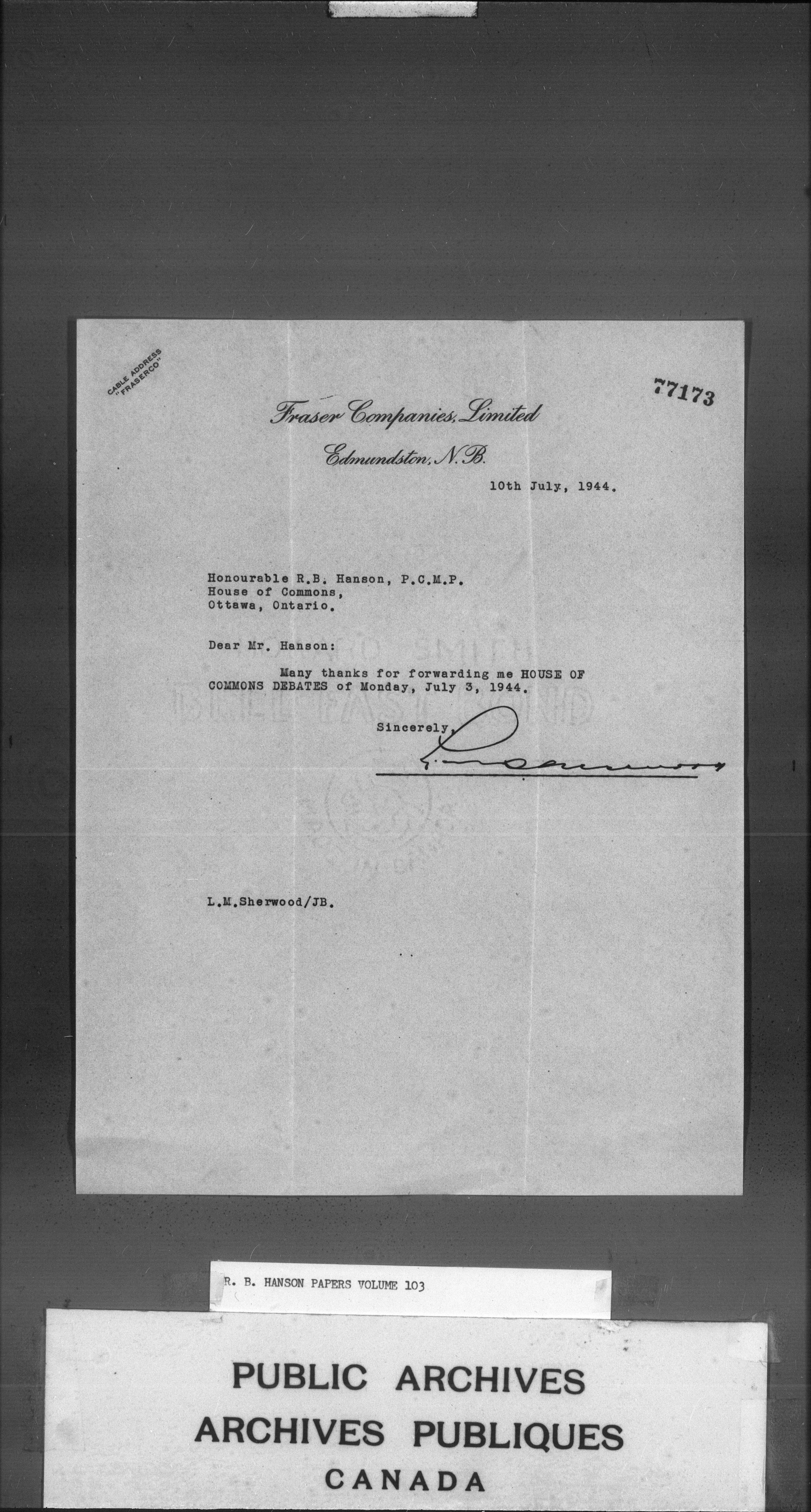 Richard Burpee Hanson fonds : C-3144