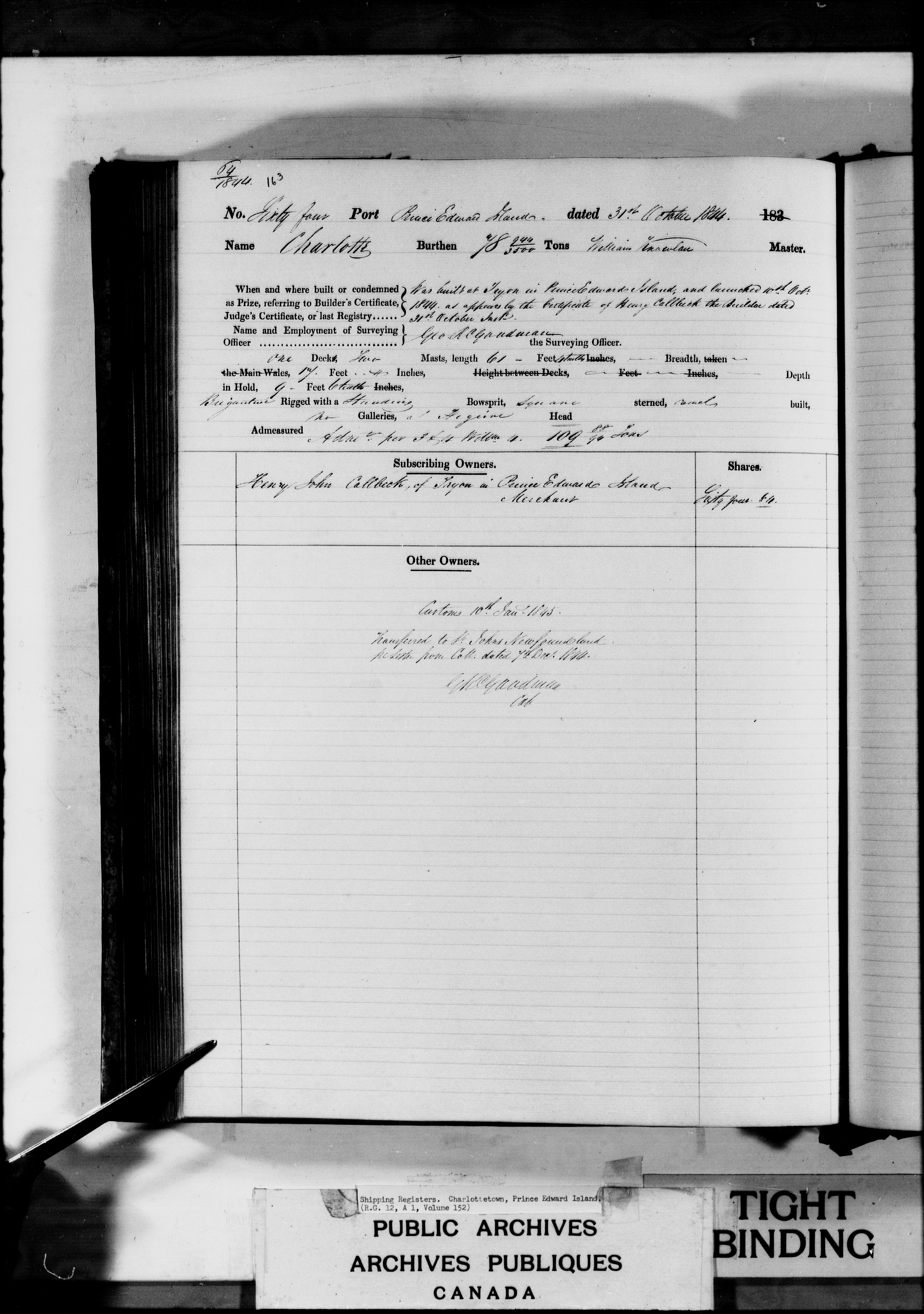 Charlottetown [Prince Edward Island] Registrar of Shipping - 3176