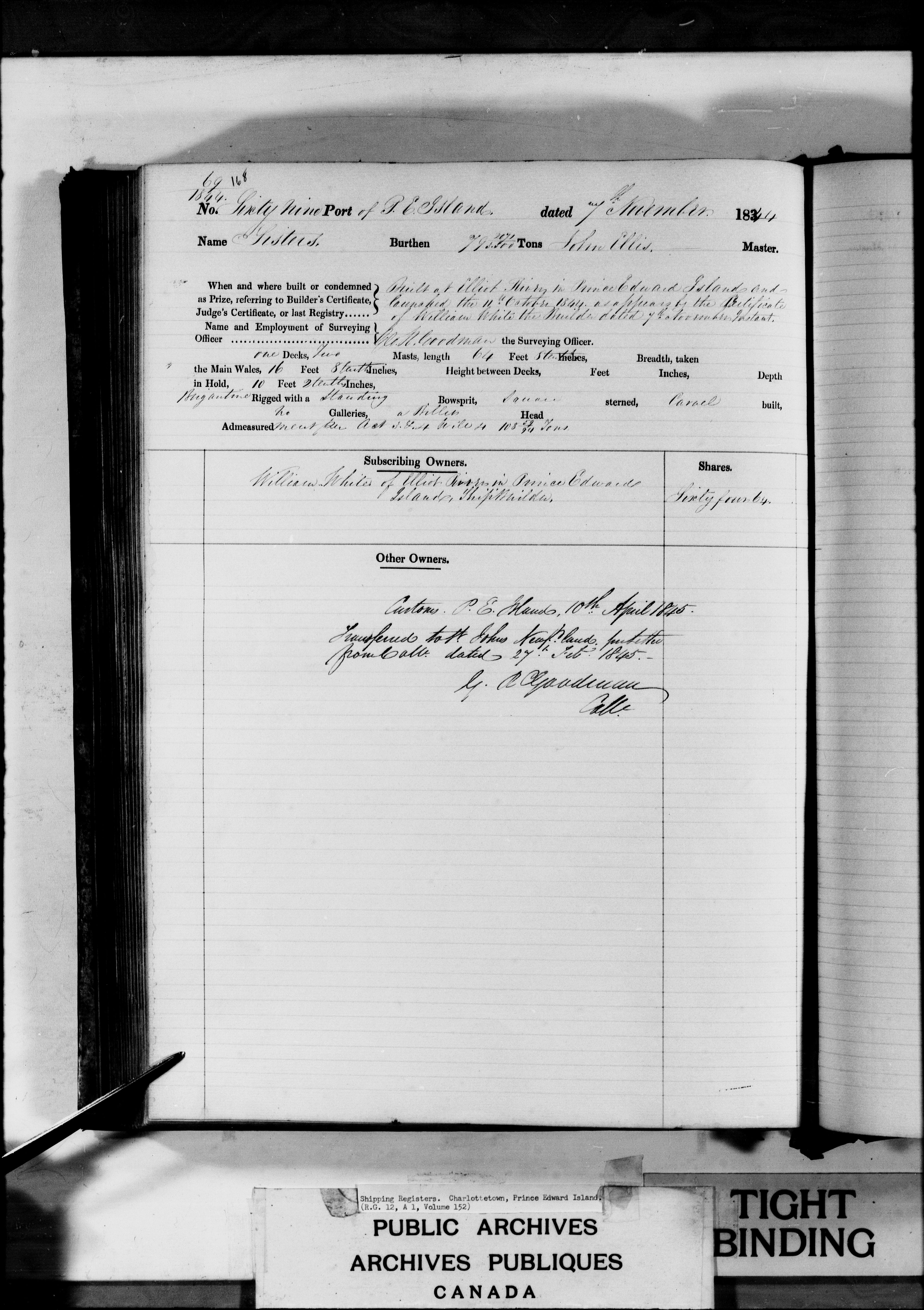 Charlottetown [Prince Edward Island] Registrar of Shipping - 3176