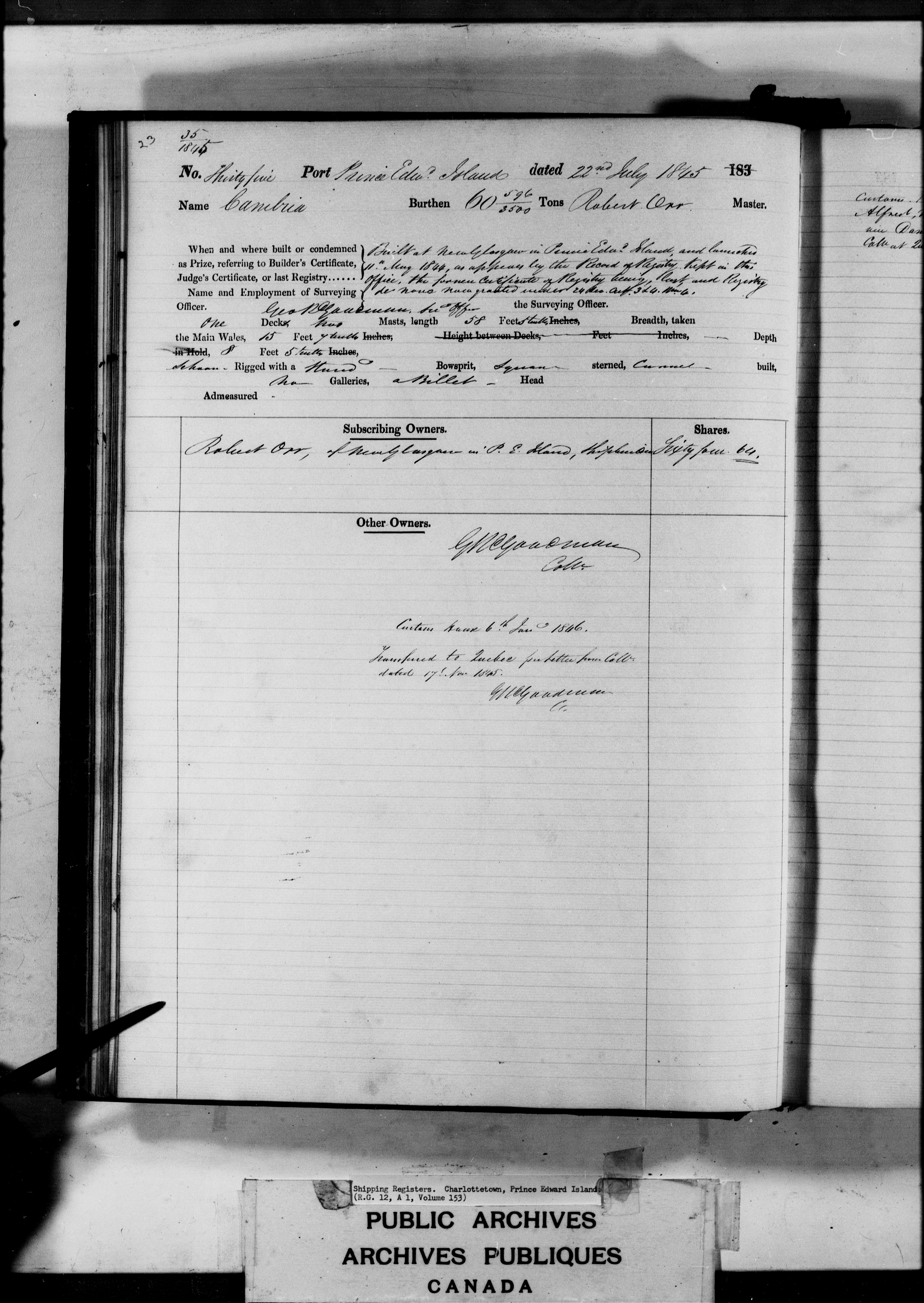 Charlottetown [Prince Edward Island] Registrar of Shipping - 3177