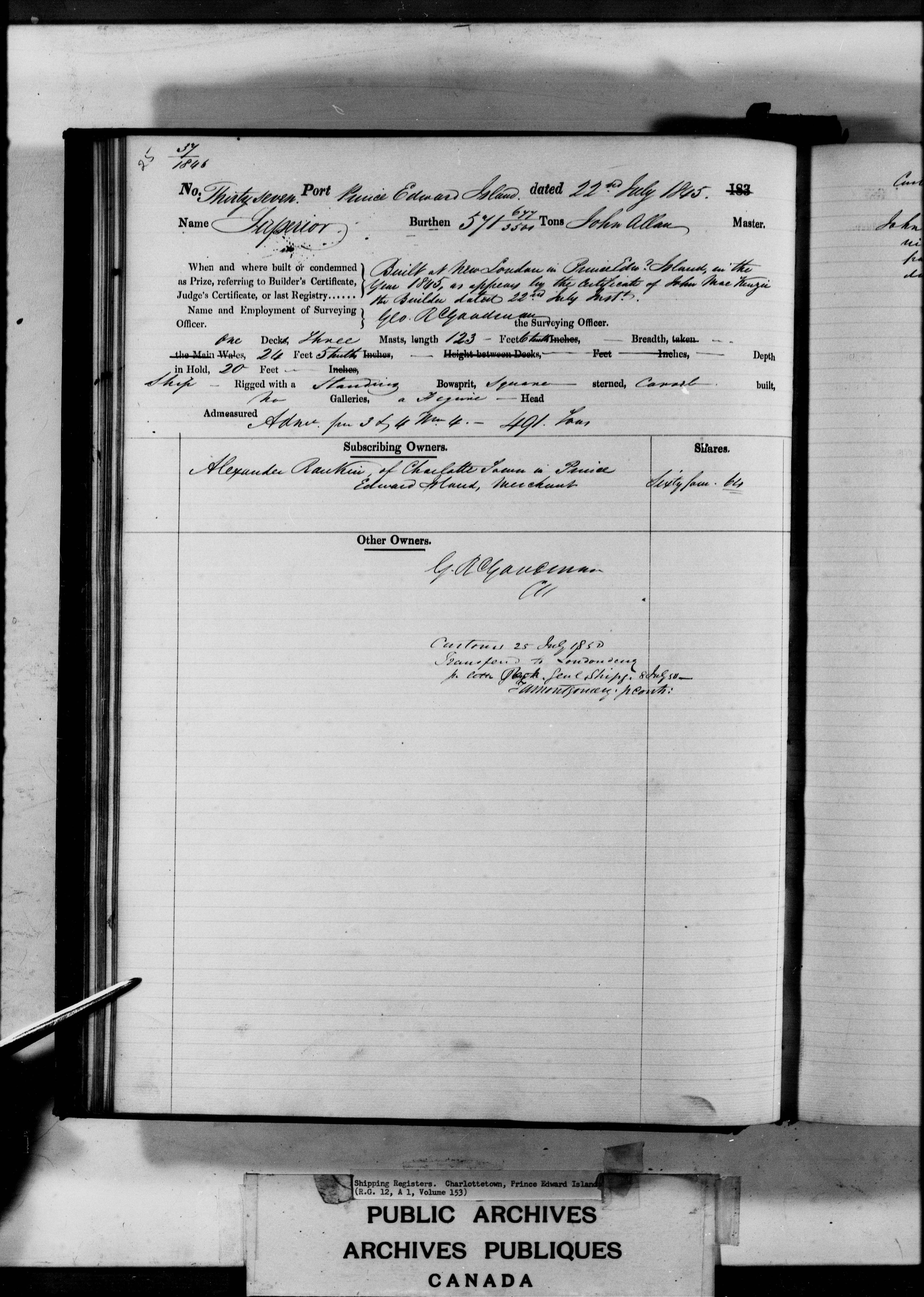 Charlottetown [Prince Edward Island] Registrar of Shipping - 3177