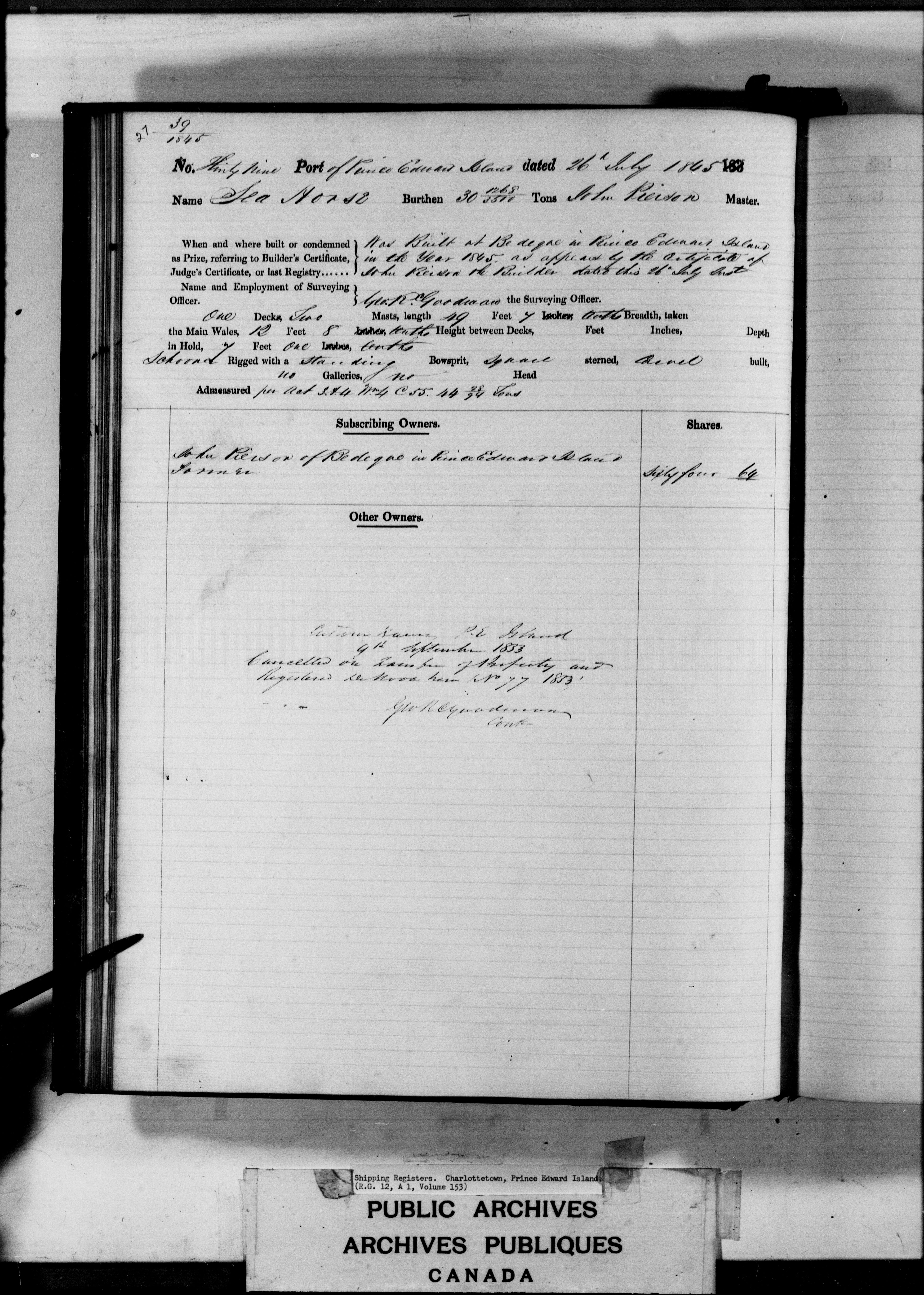 Charlottetown [Prince Edward Island] Registrar of Shipping - 3177