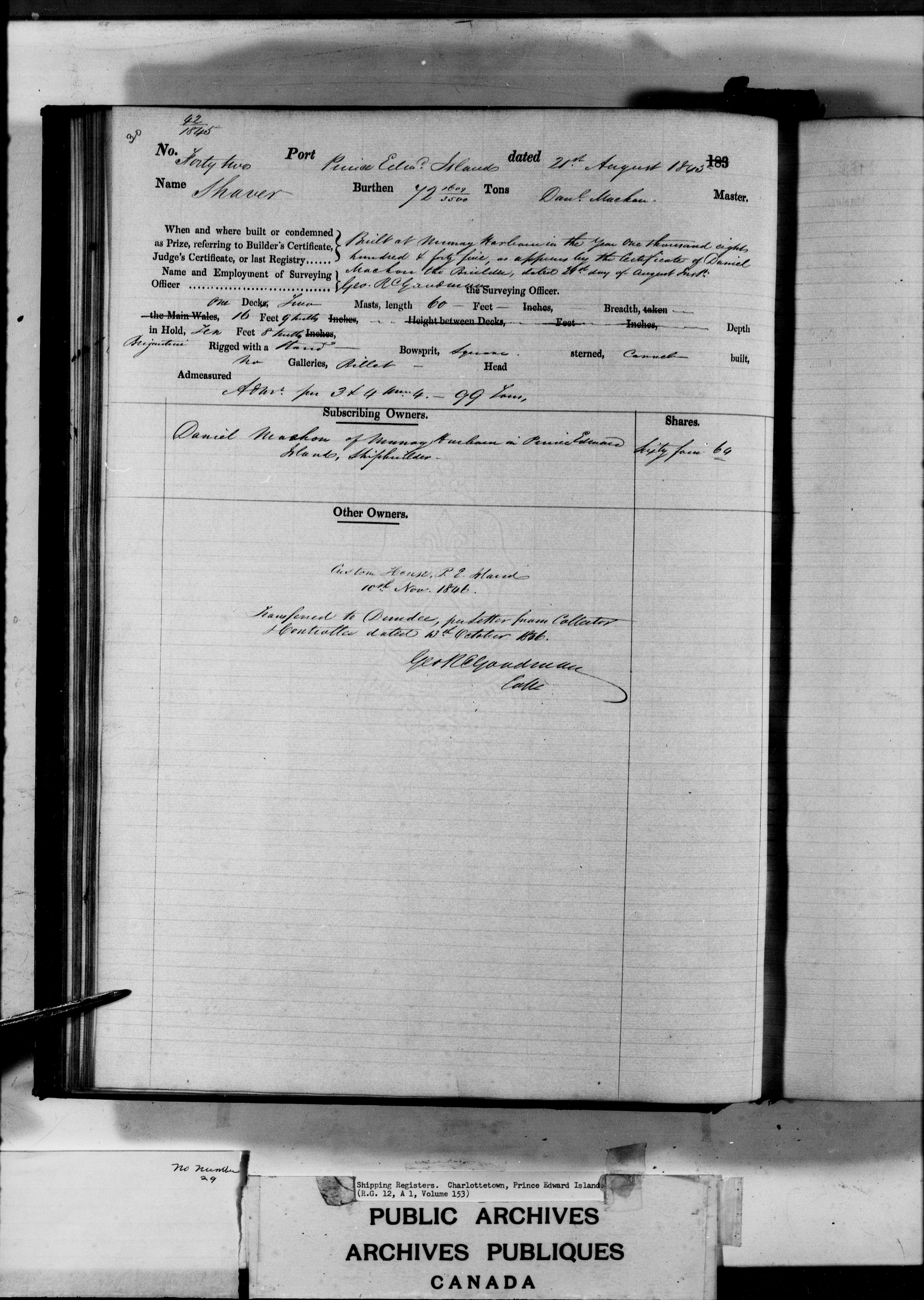 Charlottetown [Prince Edward Island] Registrar of Shipping - 3177