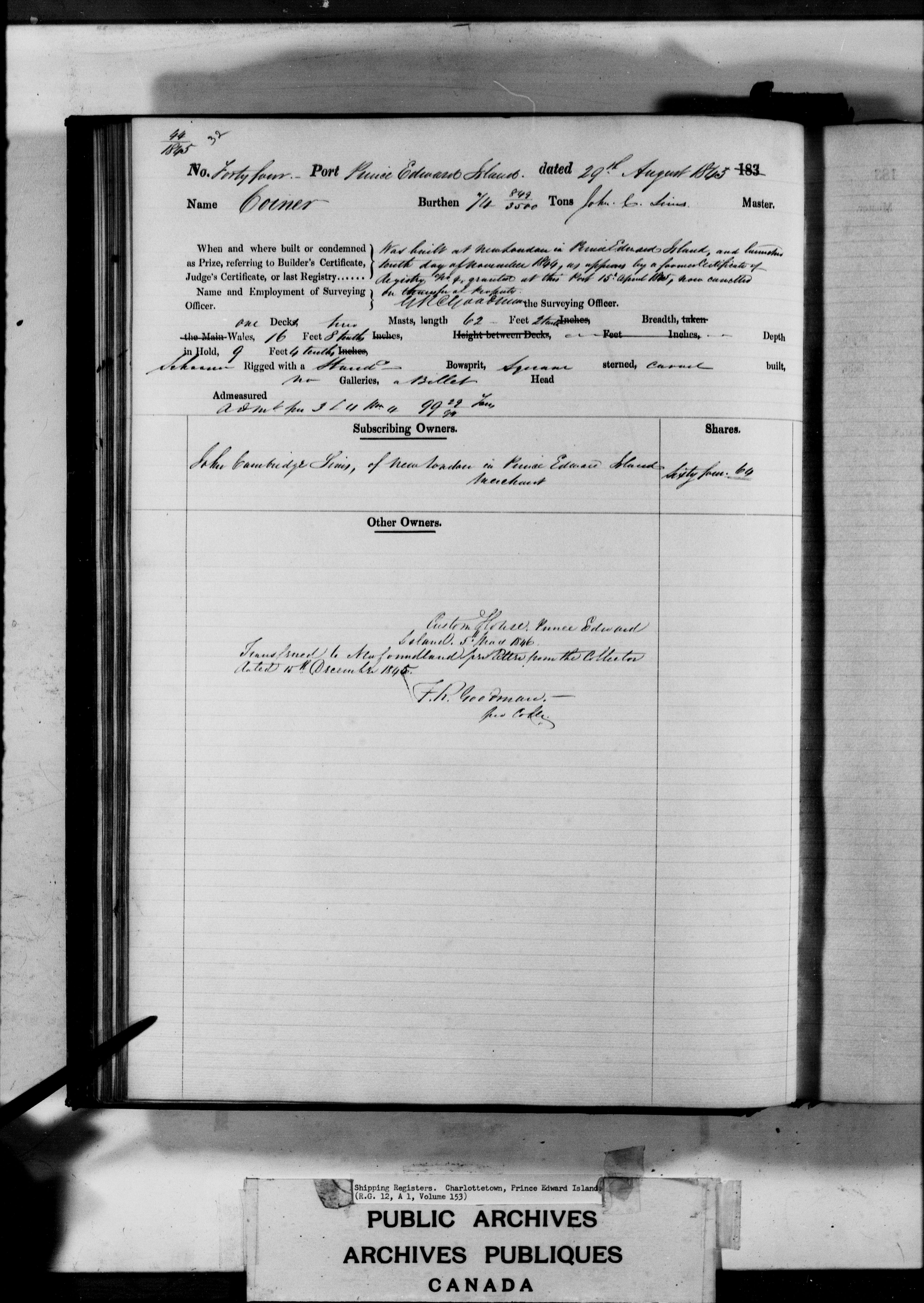 Charlottetown [Prince Edward Island] Registrar of Shipping - 3177