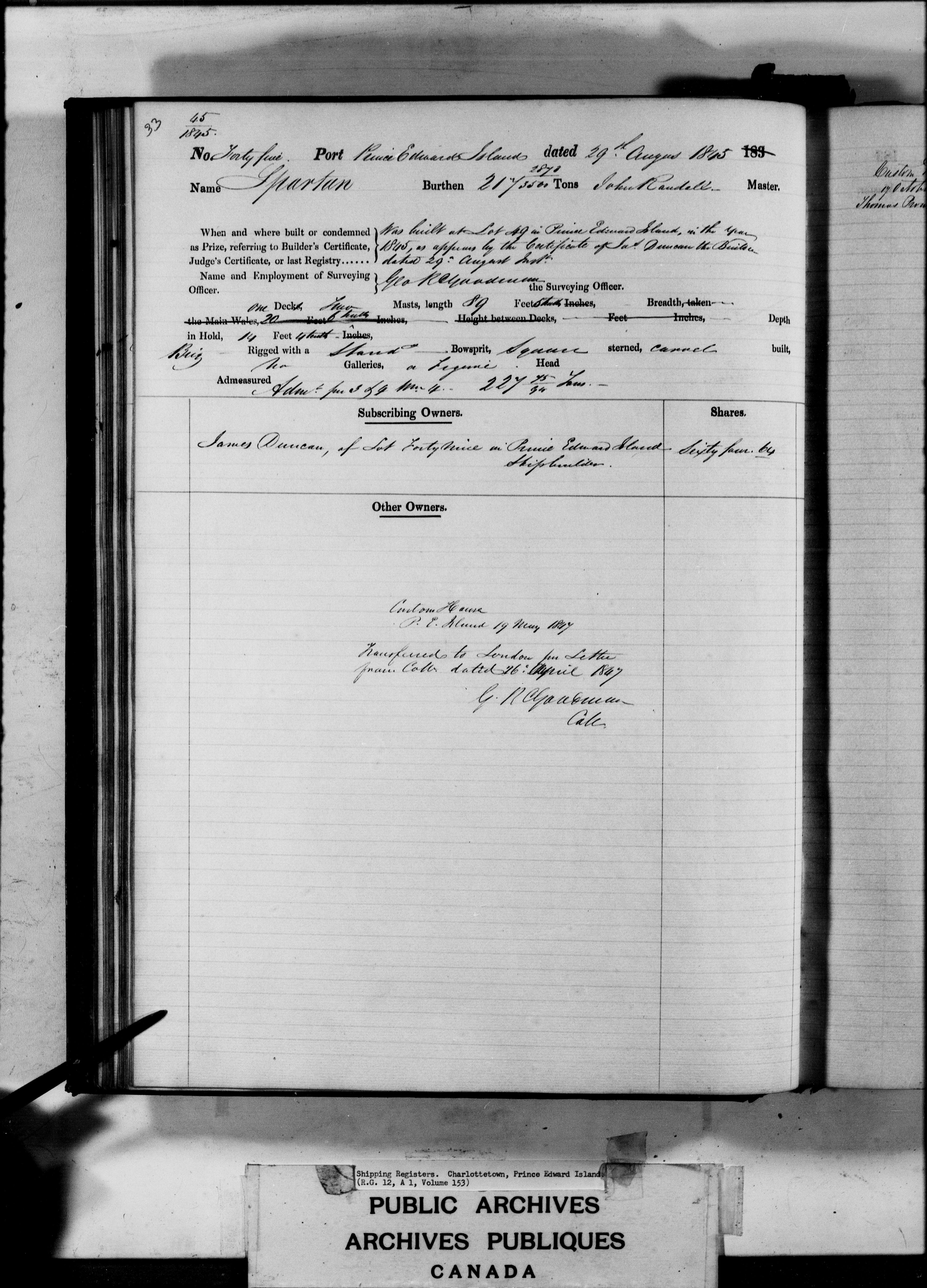 Charlottetown [Prince Edward Island] Registrar of Shipping - 3177