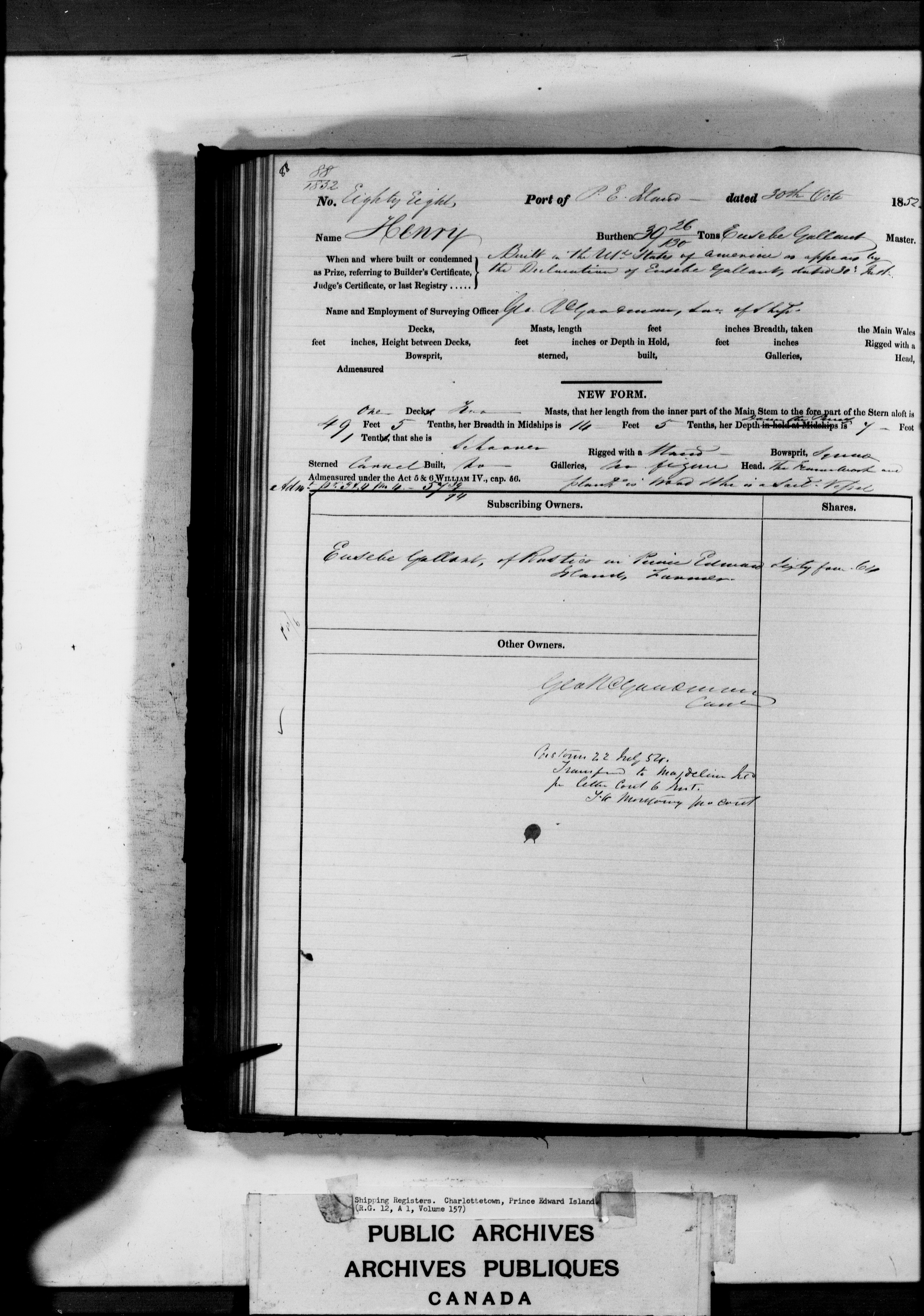 Charlottetown [Prince Edward Island] Registrar of Shipping - 3177